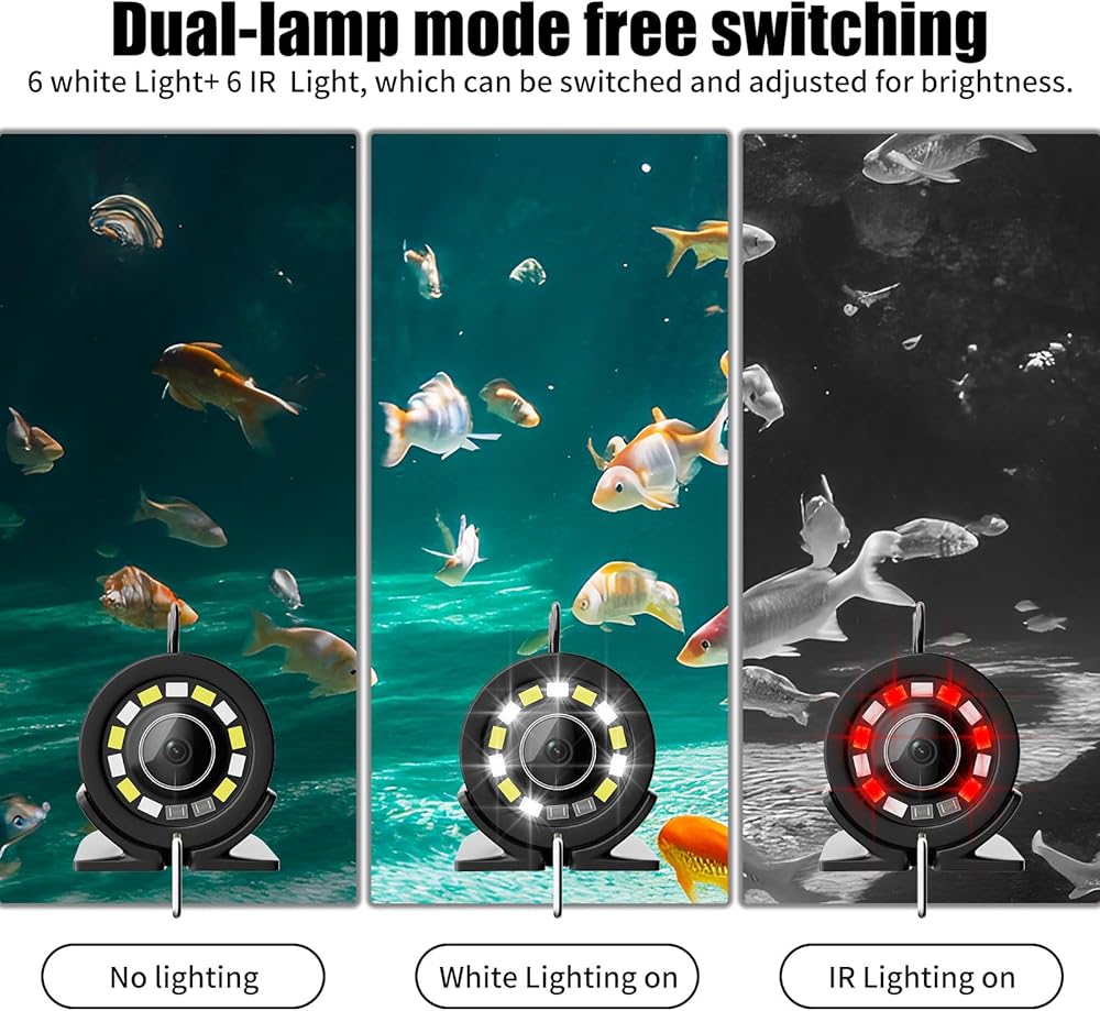 [رؤية ليلية وتصميم مقاوم للماء]: مجهزة بـ 6 مصابيح بالأشعة تحت الحمراء + 6 مصابيح LED بيضاء، تحتوي كاميرا صيد الجليد هذه على وضع ليلي بنقرة واحدة للحصول على صور واضحة تمامًا في الماء الداكن أو الغامض. كاميرا IP68 المقاومة للماء تجعلها مثالية للمياه العميقة وبيئات الصيد القاسية