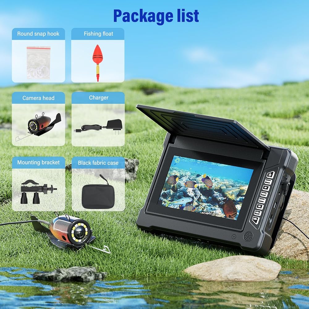 [ما تحصل عليه]: مضيف كاميرا الصيد تحت الماء، خطاف دائري، عوامة صيد، شاحن USB-C، دعامة تثبيت، حافظة قماش سوداء