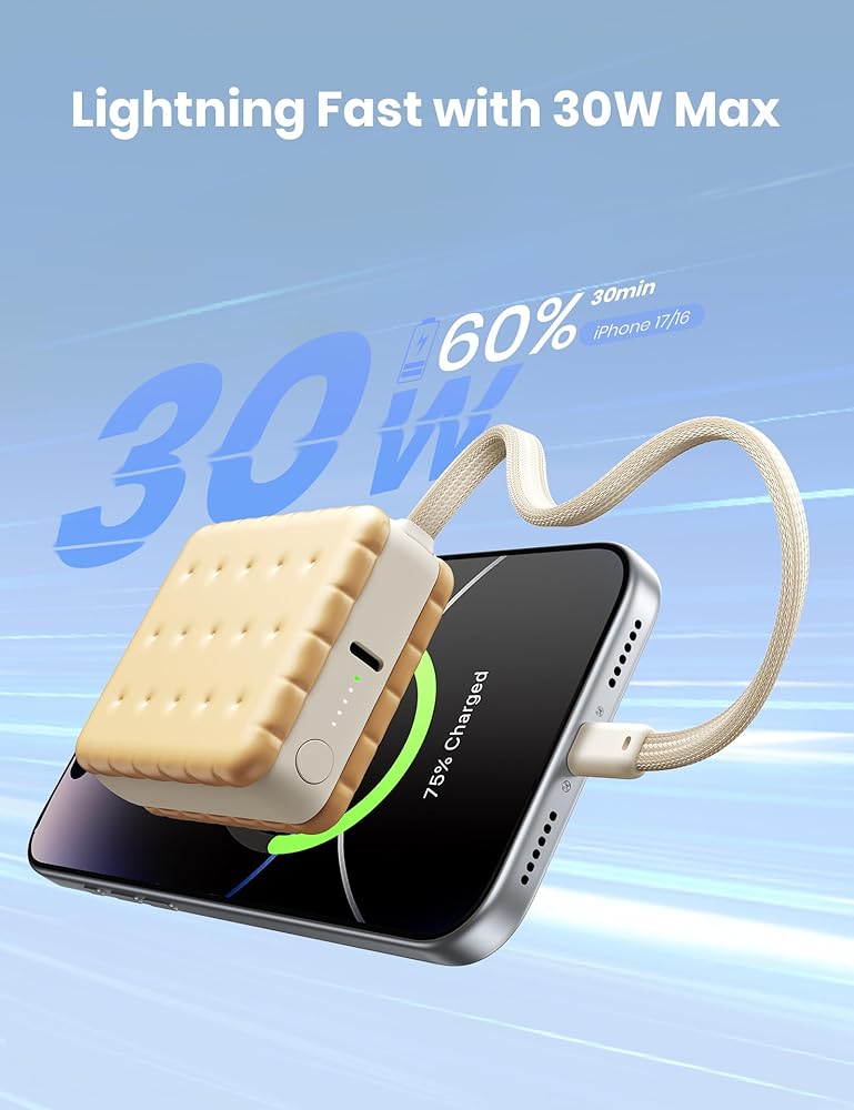 صغير الحجم وخفيف الوزن: يتميز بنك الطاقة للهواتف الخاص بنا بكابل مدمج - لا مزيد من التشابك أو الأسلاك المنسية! كما يمكن استخدام هذا التصميم المبتكر بذكاء كمقبض مريح ومريح. يزن 200 جرام فقط، ويمكن تثبيته بشكل آمن على إصبعك من أجل الراحة دون استخدام اليدين. ضعه في الجيب أو علقه على حقيبة الظهر. استمتع بالطاقة الفورية عند الطلب في أي مكان، وهي مثالية للركاب المنشغلين والمسافرين المغامرين والمتنزهين المتحمسين. ضروري للعطلات الأوروبية والرحلات البحرية والسفر وحياة النوم.