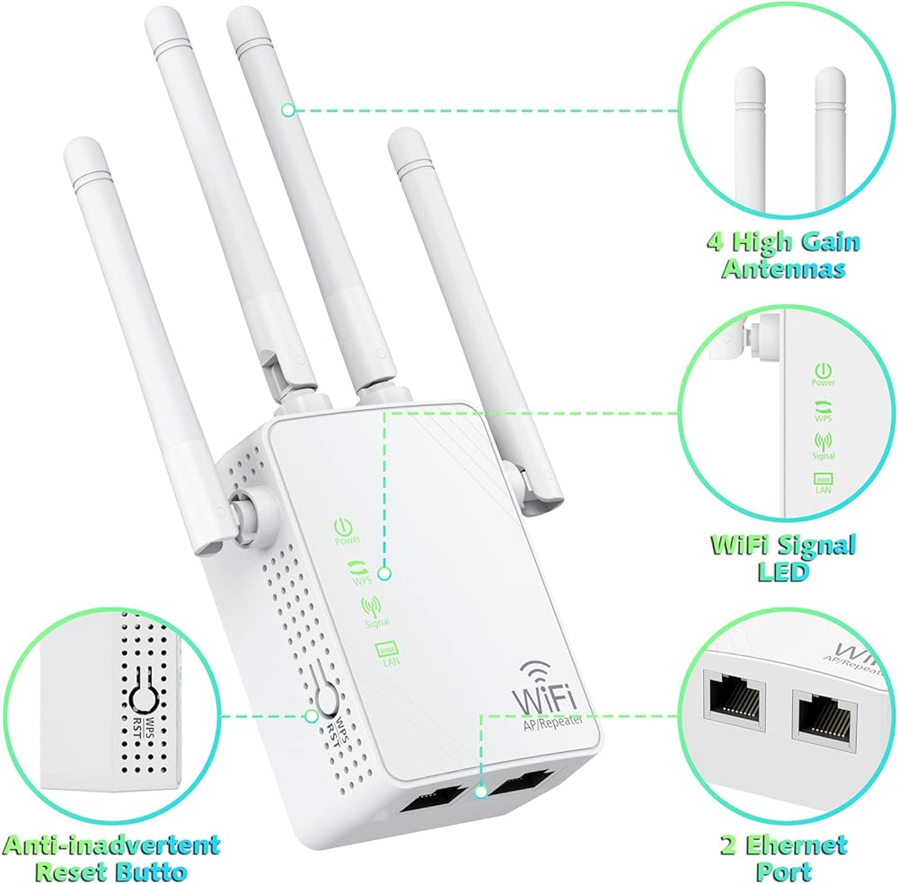 معزز إشارة موسع WiFi يصل إلى 10000 قدم مربع و55 جهازًا، موسع نطاق WiFi، مكرر الإنترنت اللاسلكي، مضخم صوت طويل المدى مع منفذ إيثرنت، نقطة وصول، إعداد مفتاح واحد، متوافق مع Alexa