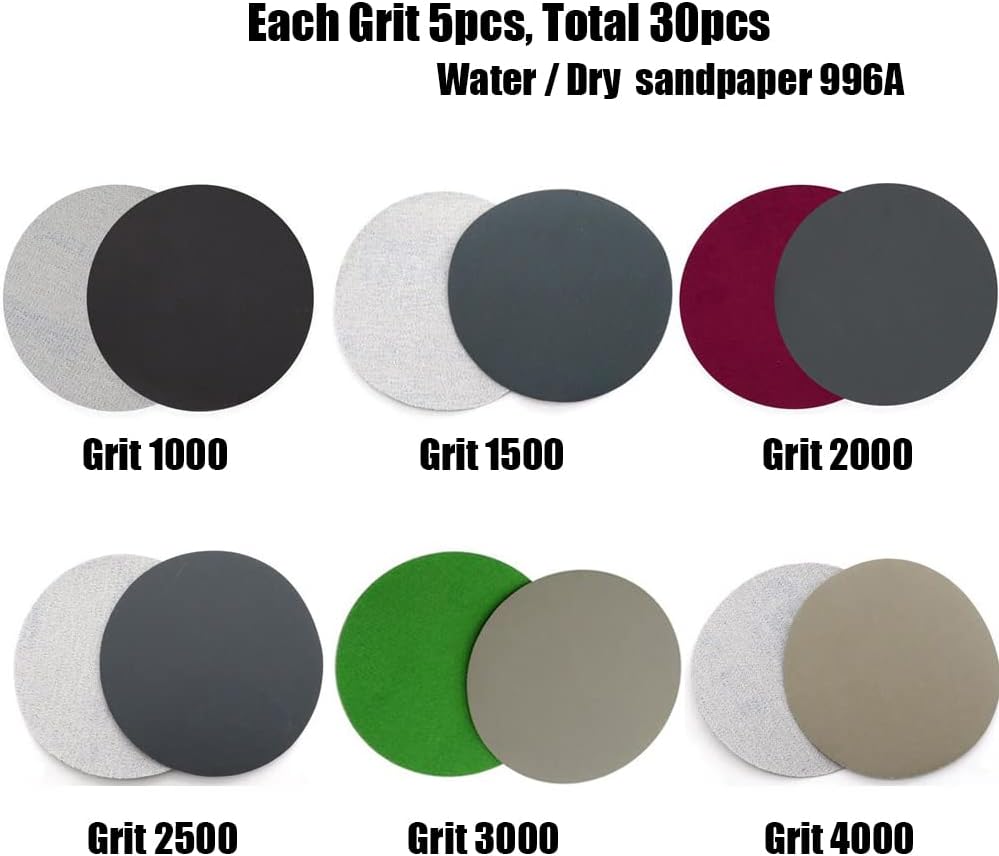 30 قطعة 150 مم /6 بوصة حبيبة 1000/1500/2000/2500/3000/4000 أقراص السنفرة المائية الجافة ذات حلقة ورق الصنفرة ورق الصنفرة مستديرة ورق الصنفرة ورقة الرمل