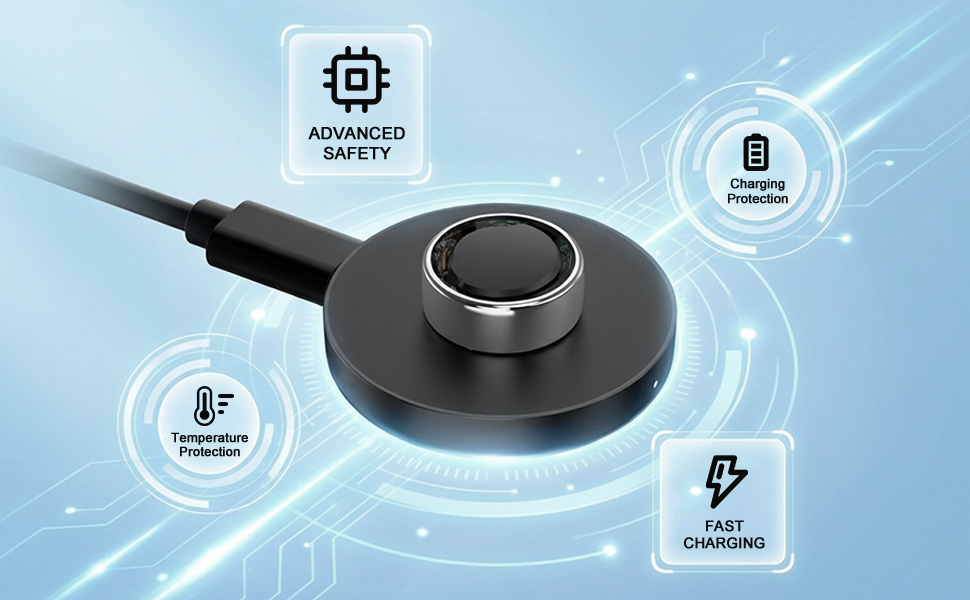 • التوافق: تم تصميم الشاحن الحلقي الذكي بدقة لـ Oura Ring Gen 3، مع هيكل وملف متطابقين تمامًا مع حجم الحلقة، مما يضمن نقل طاقة مستقر وآمن. يستغرق الشحن من 0% إلى 70% ساعة واحدة تقريبًا وحوالي ساعتين للشحن الكامل، مما يلبي احتياجات الشحن اليومية والليلية.