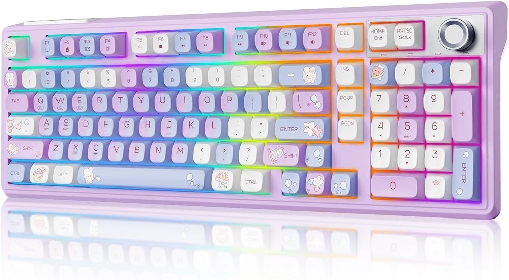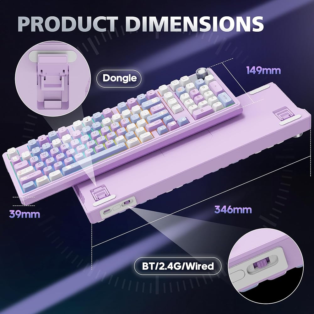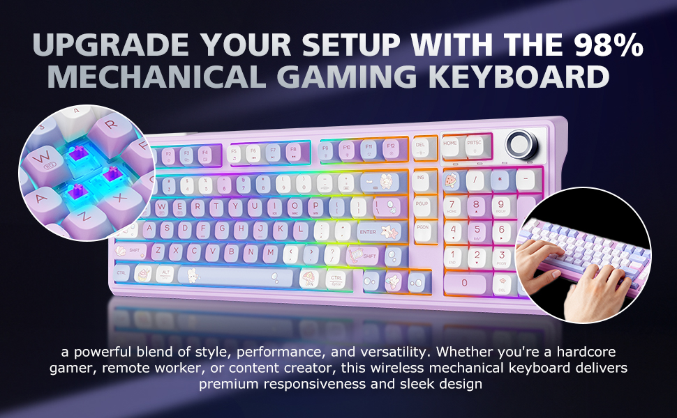 لوحة مفاتيح ميكانيكية لاسلكية F98 مع مقبض، لوحة مفاتيح ثوكي كريمية مع لوحة أرقام، قابلة للتبديل السريع، لوحة مفاتيح بإضاءة خلفية RGB BT 5.0/2.4G/USB-C لأجهزة Mac، ولوحات مفاتيح ألعاب الكمبيوتر المحمول والكمبيوتر الشخصي، وردي