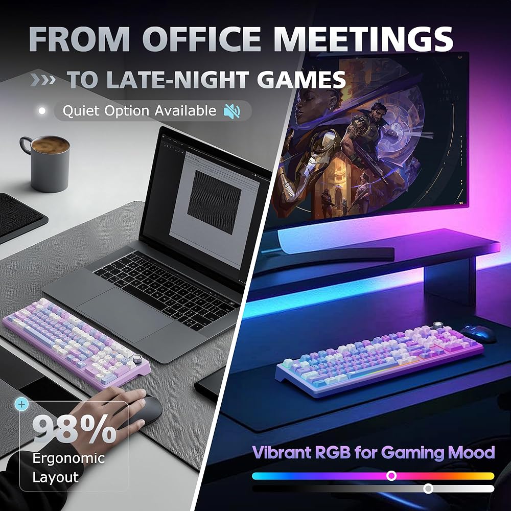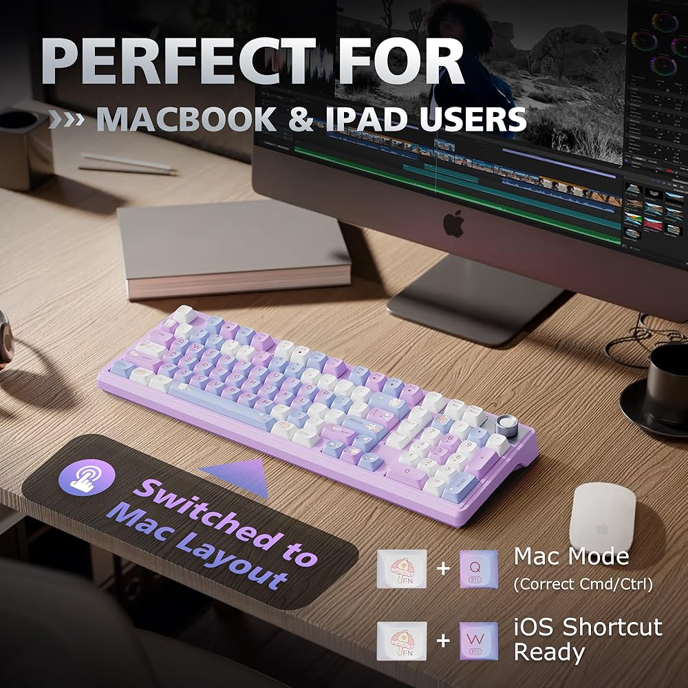 • 【 لوحة مفاتيح ميكانيكية لاسلكية بنسبة 98% 】تتميز لوحة المفاتيح الميكانيكية اللاسلكية الوردية بتصميم موفر للمساحة بنسبة 98% يحافظ على لوحة الأرقام للإنتاجية والألعاب. مقبض التحكم المدمج في الوسائط يجعل التحكم في مستوى الصوت والتشغيل سريعًا وبديهيًا