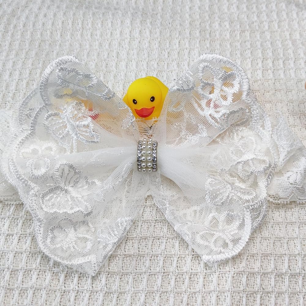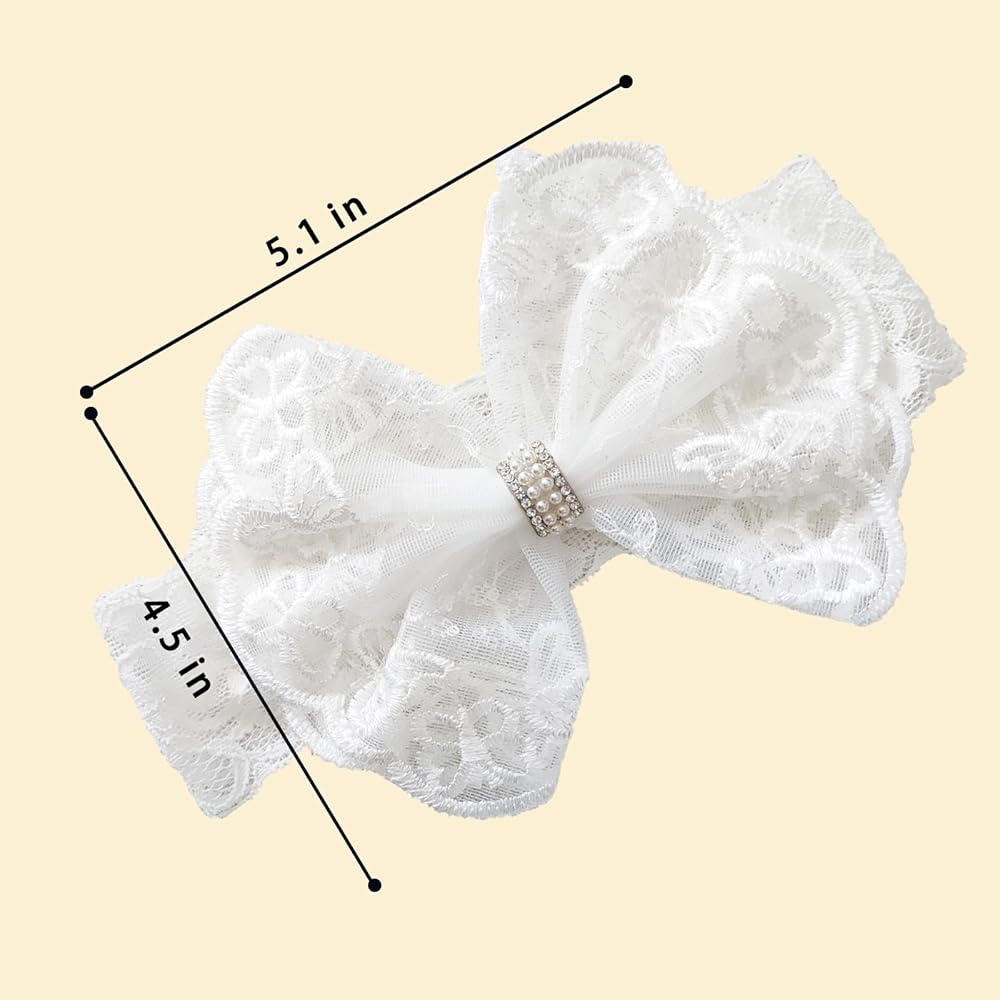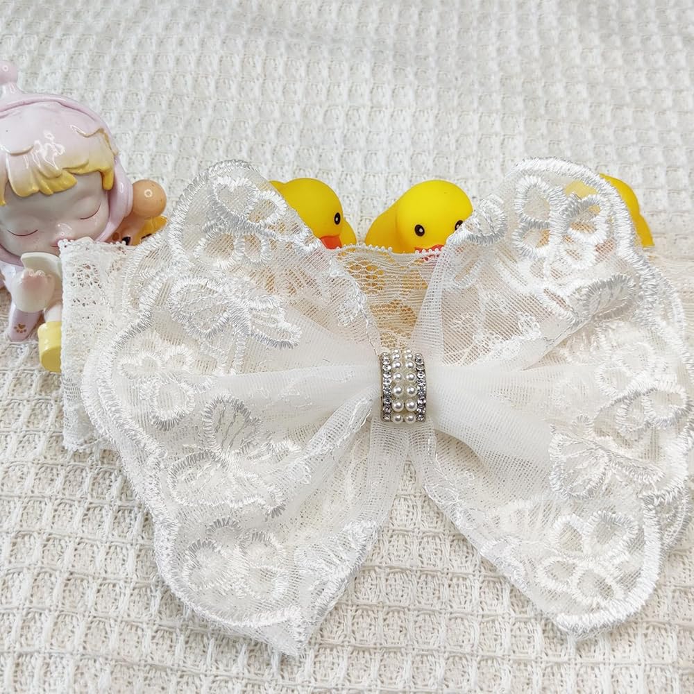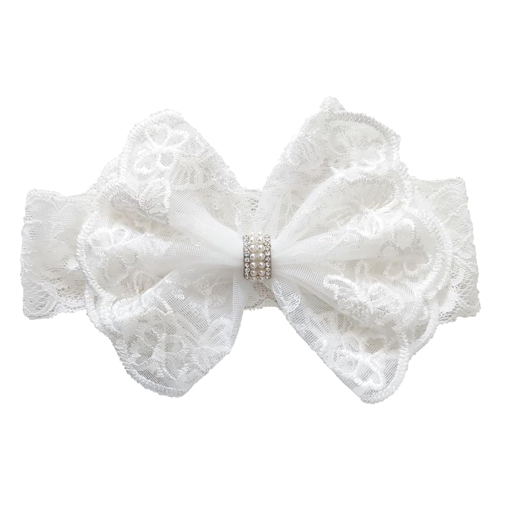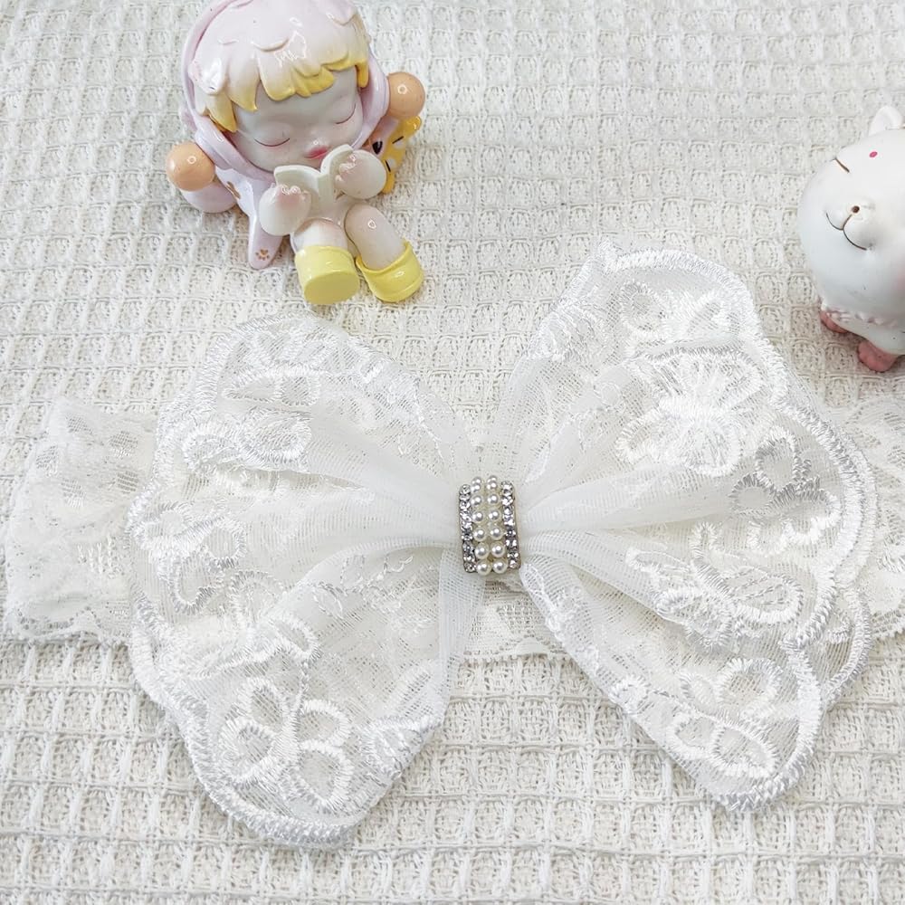 Elegant Lace Bow Design:Features a beautifully crafted lace bow with delicate pearl embedded at the center, adding timeless charm and grace to your baby's look.
