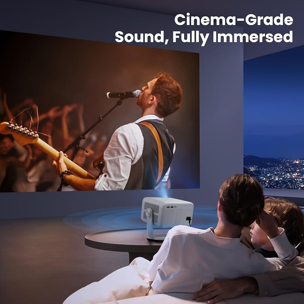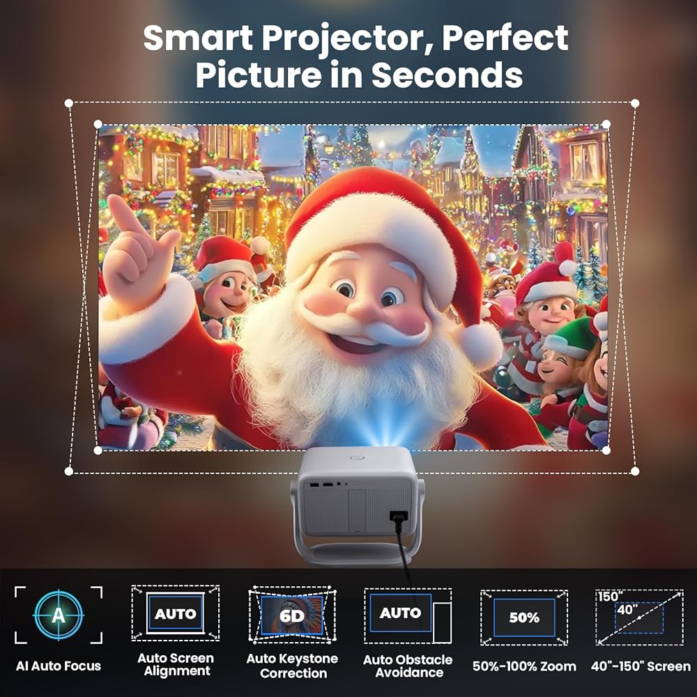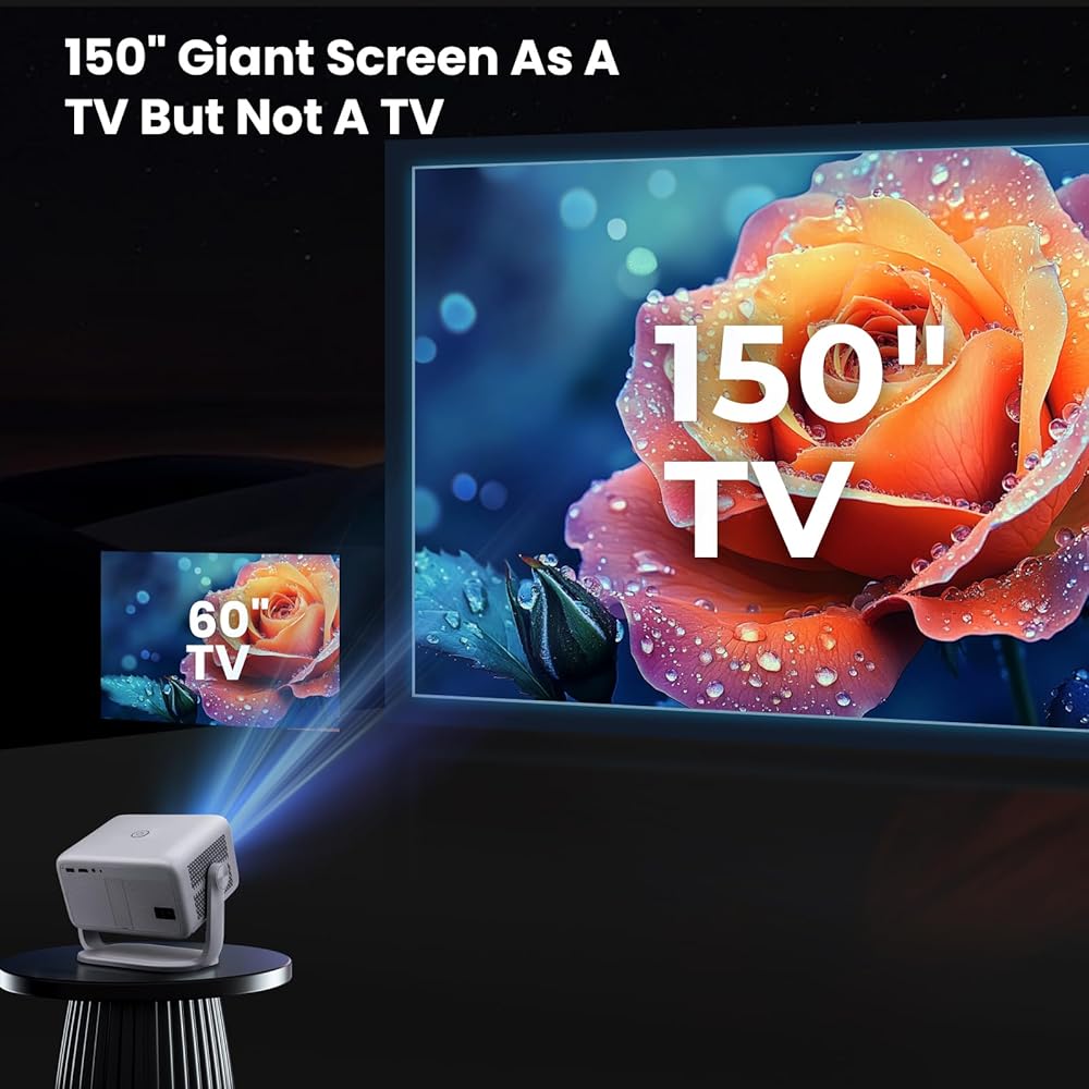 جهاز عرض ذكي مع واي فاي وبلوتوث، تطبيقات مدمجة، جهاز عرض محمول بقوة 600 لومن ANSI مع حامل، جهاز عرض صغير 1080 بكسل لغرفة النوم، حجر مفاتيح تلقائي وتركيز E أجهزة عرض سينما منزلية داخلية وخارجية 4K