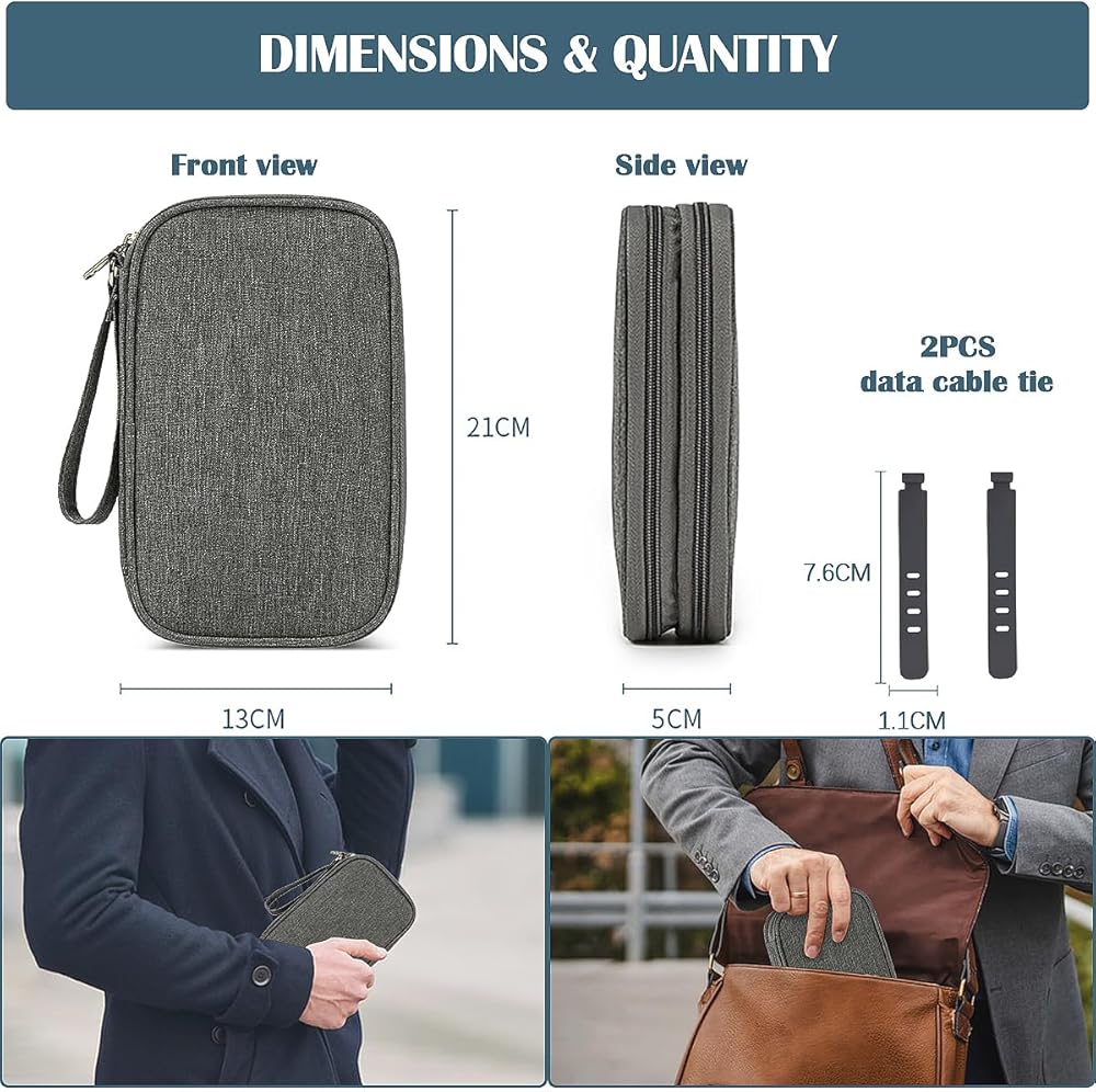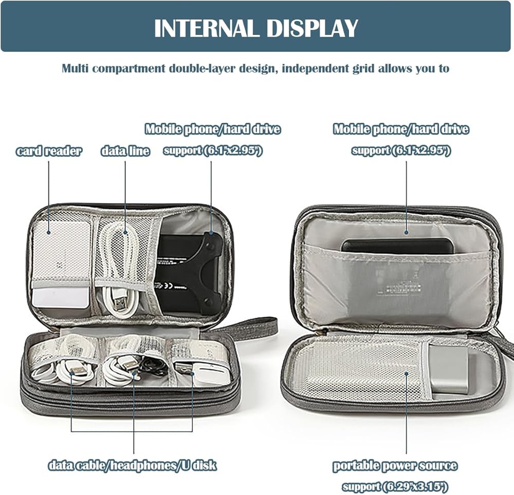 The electronic bag can store portable power banks, hard drives, SD memory cards, data cables, and headphones.