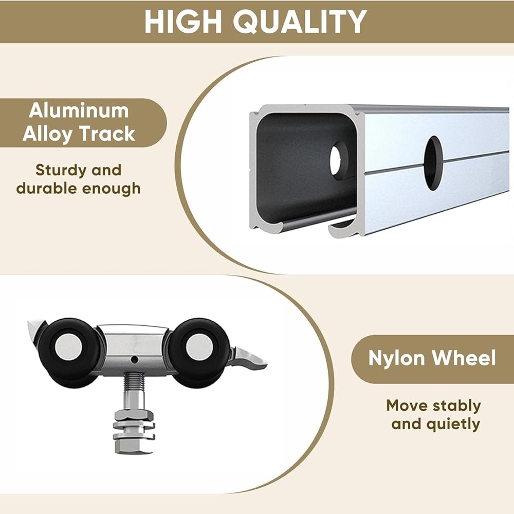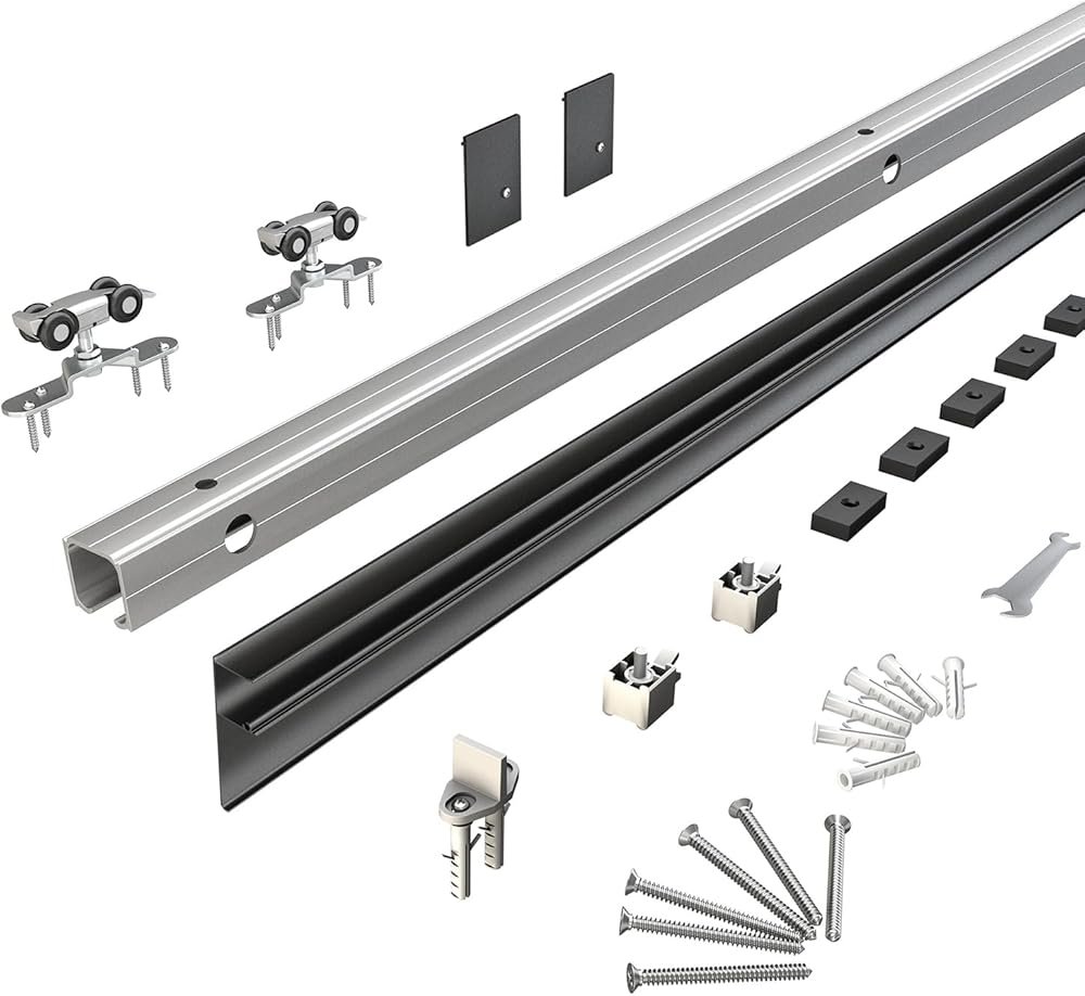 Package include: 1 x 6ft rail, 1x Decorative cover(black),5x Shim Boards 2 x rollers, 2 x door stops,2x End Caps, 1 x floor guide.1x wrench