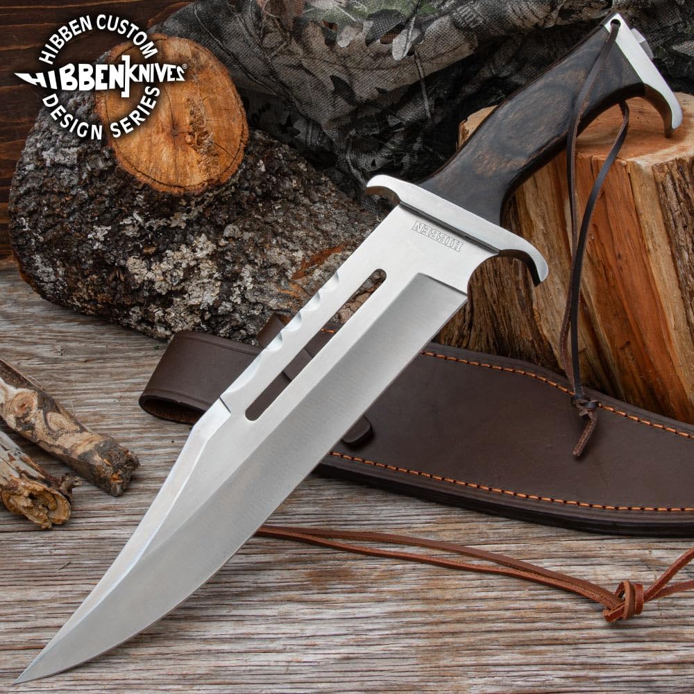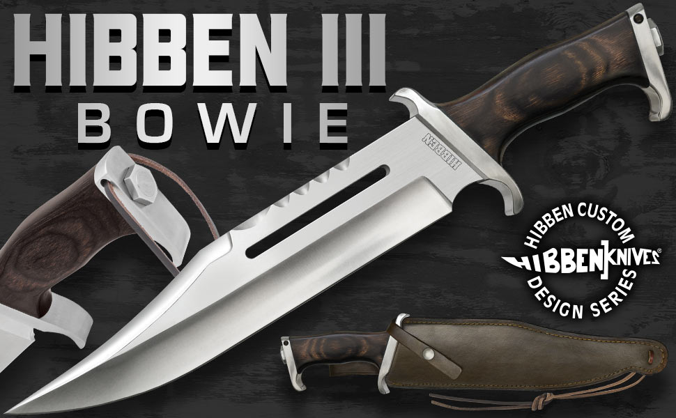 تصميم طبق الأصل للفيلم الدقيق: صممه صانع السكاكين الشهير جيل هيبين، سكين باوي هذا هو نسخة أصلية للسكين الأيقوني المستخدم في فيلم رامبو عام 1988، مصنوع من مواصفات الدعامة الأصلية.