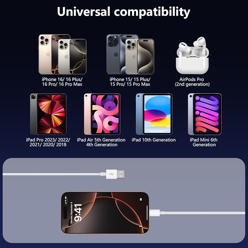 طول مثالي 3FT لوحدة التحكم في السيارة: التصميم الذي يبلغ 3 أقدام هو كابل usb c القصير المثالي لاستخدام السيارة. فهو يزيل فوضى الكابلات حول ناقل الحركة وحاملات الأكواب، مما يحافظ على لوحة القيادة الخاصة بك أنيقة ومنظمة أثناء توصيل iPhone 17/16/15 بشكل فعال بمنفذ USB-A الخاص بالسيارة