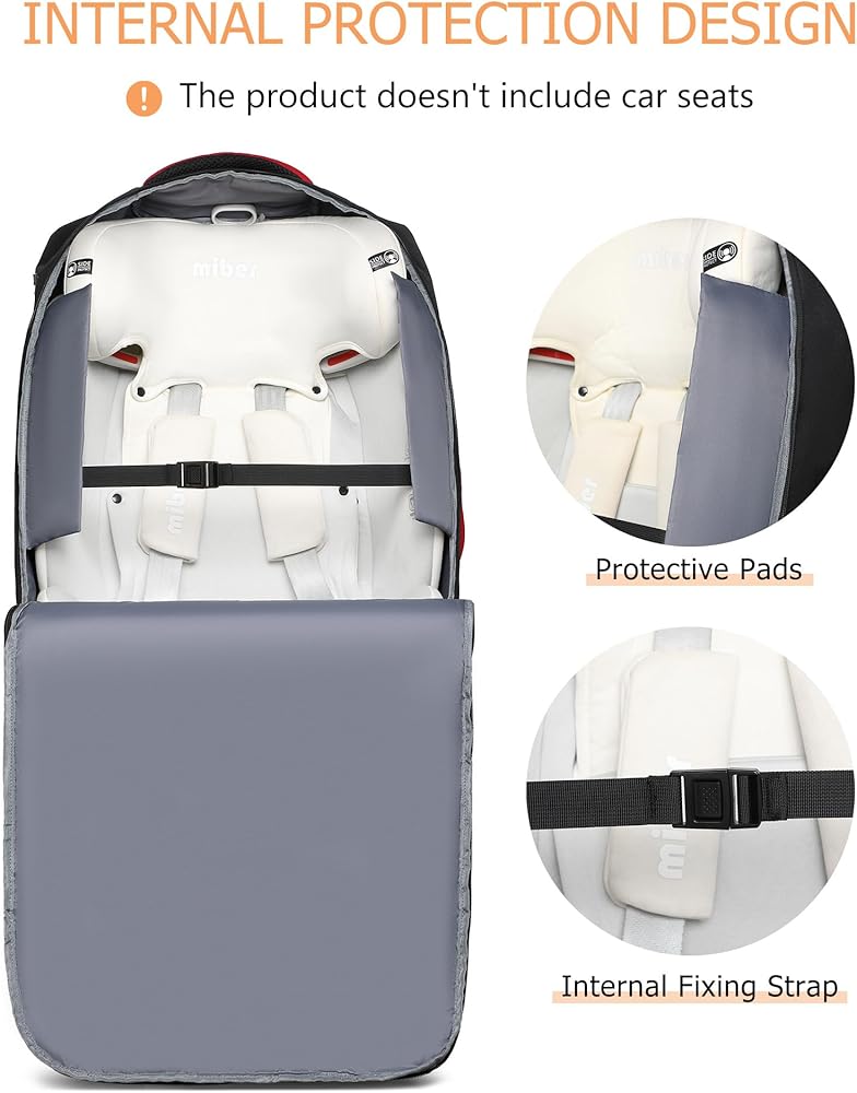 تصميم السلامة والحماية: تتميز حقيبة السفر هذه ذات العجلات بجزء داخلي مبطن وأشرطة آمنة للحفاظ على مقعد السيارة للرضع في مكانه بشكل آمن، مما يوفر حماية مثالية لمقعد السيارة. تسمح لك فتحة بطاقة الاسم الشفافة بتحديد حقيبة مقعد سيارتك على صينية تسجيل الوصول بسهولة.
