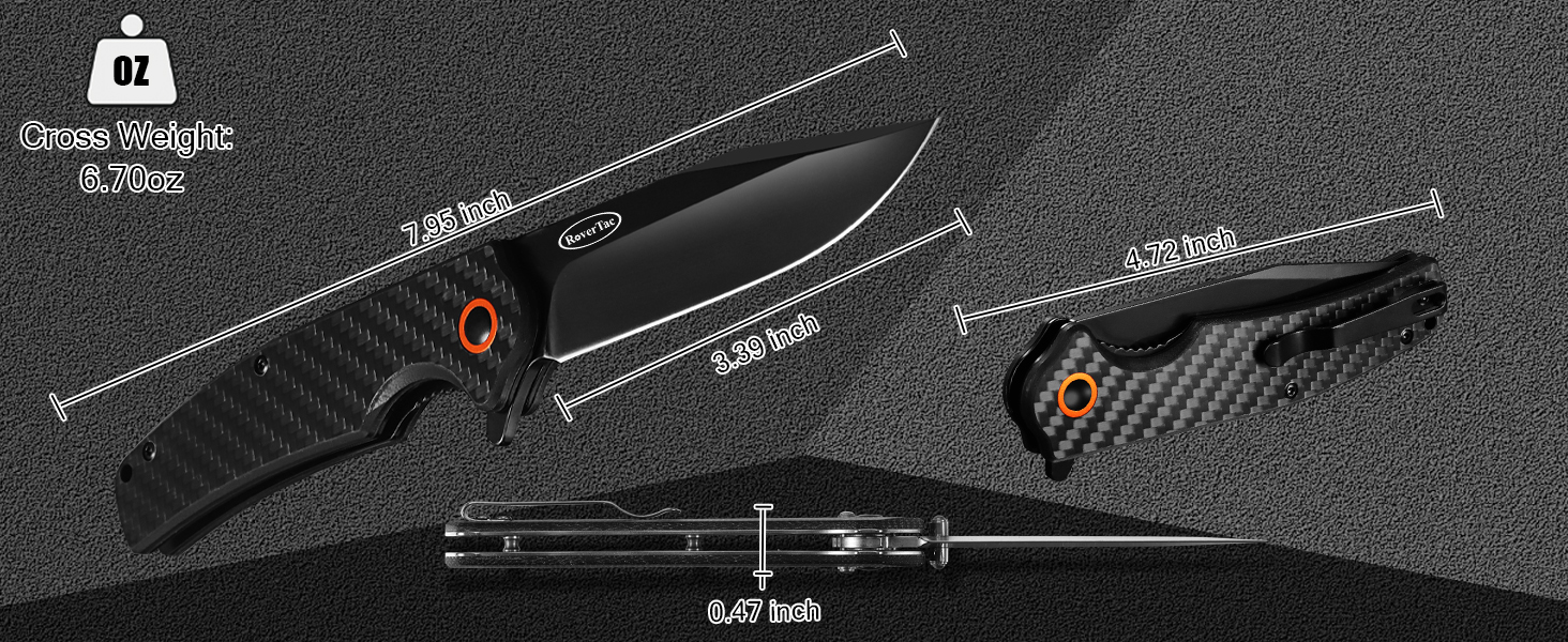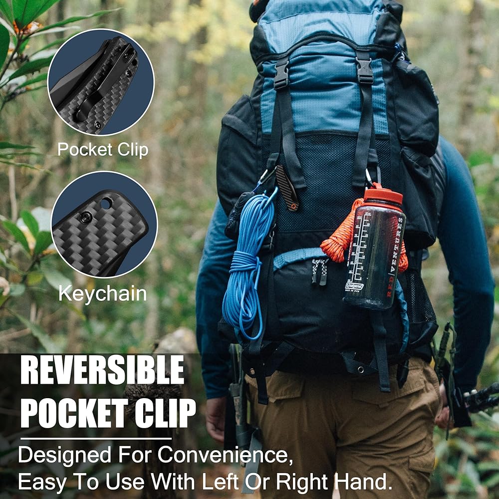 • مريحة في اليد: تتميز سكين الجيب هذه بمقبض من ألياف الكربون خفيف الوزن يوفر قبضة مريحة ومظهر أنيق. إنه عملي للتعامل الآمن في البيئات المختلفة.