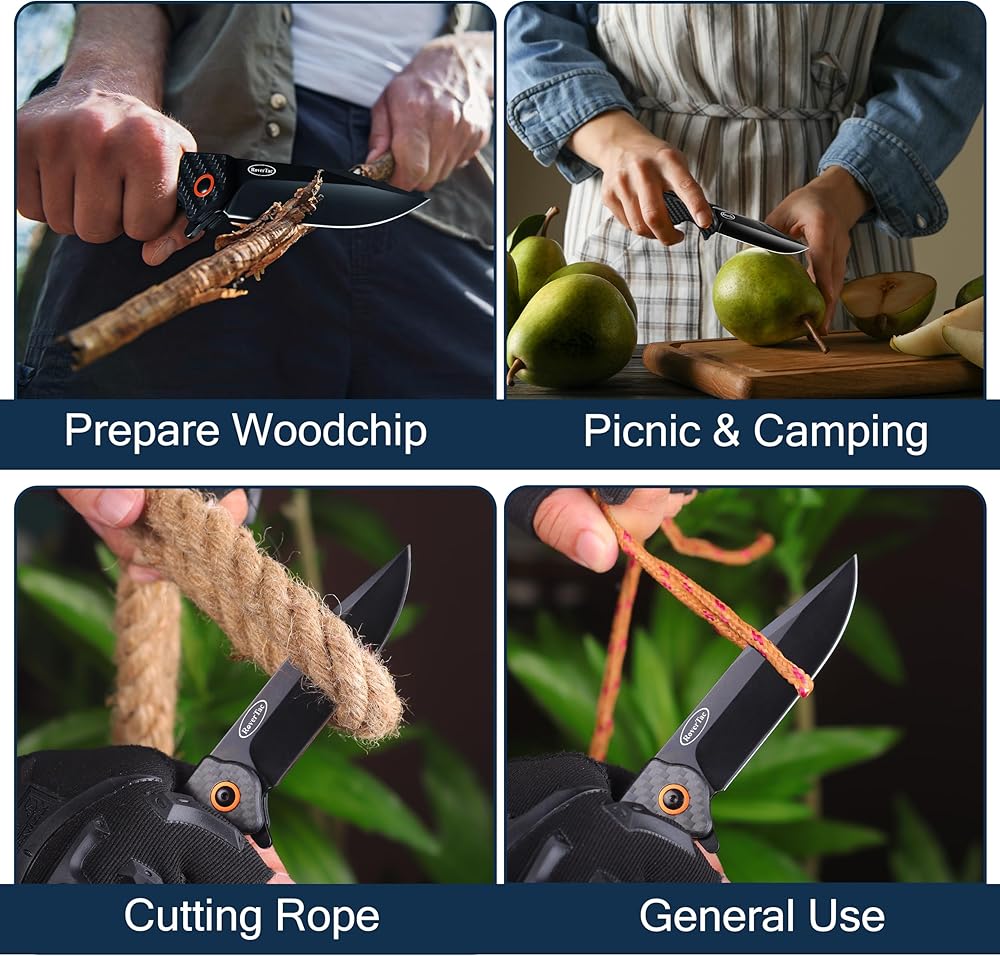 • سكين جيب متعدد الاستخدامات وهدايا مثالية: سكين الجيب هذا موثوق به للمهام اليومية والتخييم والمشي لمسافات طويلة وصيد الأسماك والبقاء على قيد الحياة. كما أنه يمثل هدية مثالية للرجال والنساء في أعياد الميلاد، وعيد الحب، وعيد الأب، وعيد الميلاد.