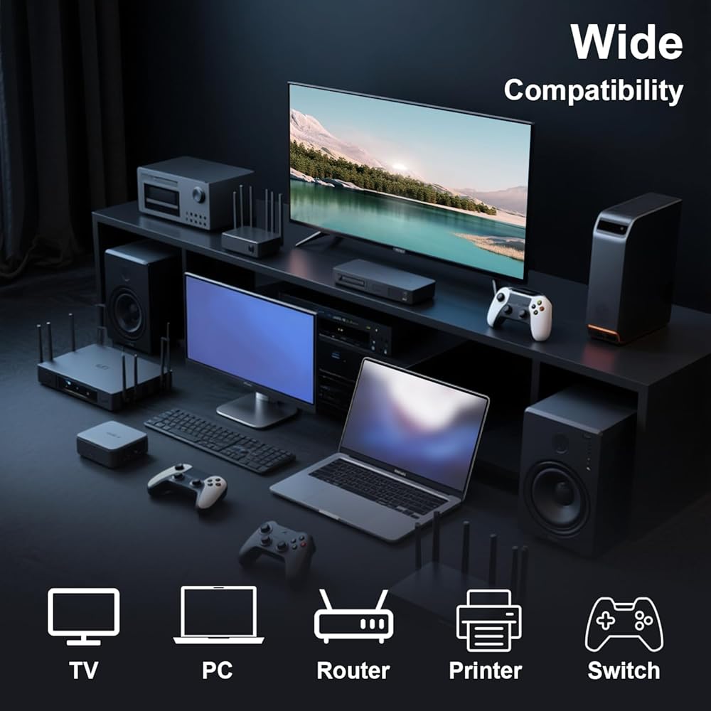 • 328ft Reliable Extension – Extends your network up to 328ft without signal loss. Ideal for home offices, server rooms, or connecting distant workstations when used with our shielded Ethernet cables.