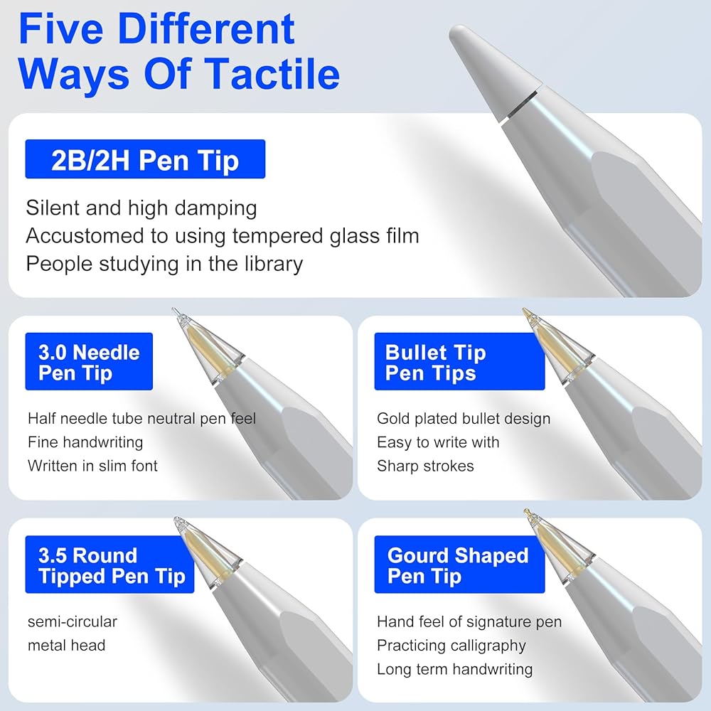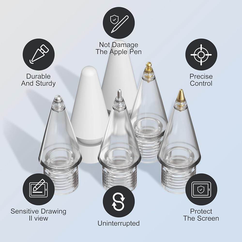 • 【توافق عالمي】تم تصميمه للتوافق الكامل مع Apple Pencil USB-C/Apple Pencil Pro/ Apple Pencil الجيل الثاني/ Apple Pencil الجيل الأول، تعمل أطراف قلم iPad الخاصة بنا بشكل لا تشوبه شائبة مع iPad. مقاومة للاهتراء، كتابة حساسة، مثالية للرسم والكتابة والتصميم الاحترافي على المدى الطويل (القلم غير متضمن)
