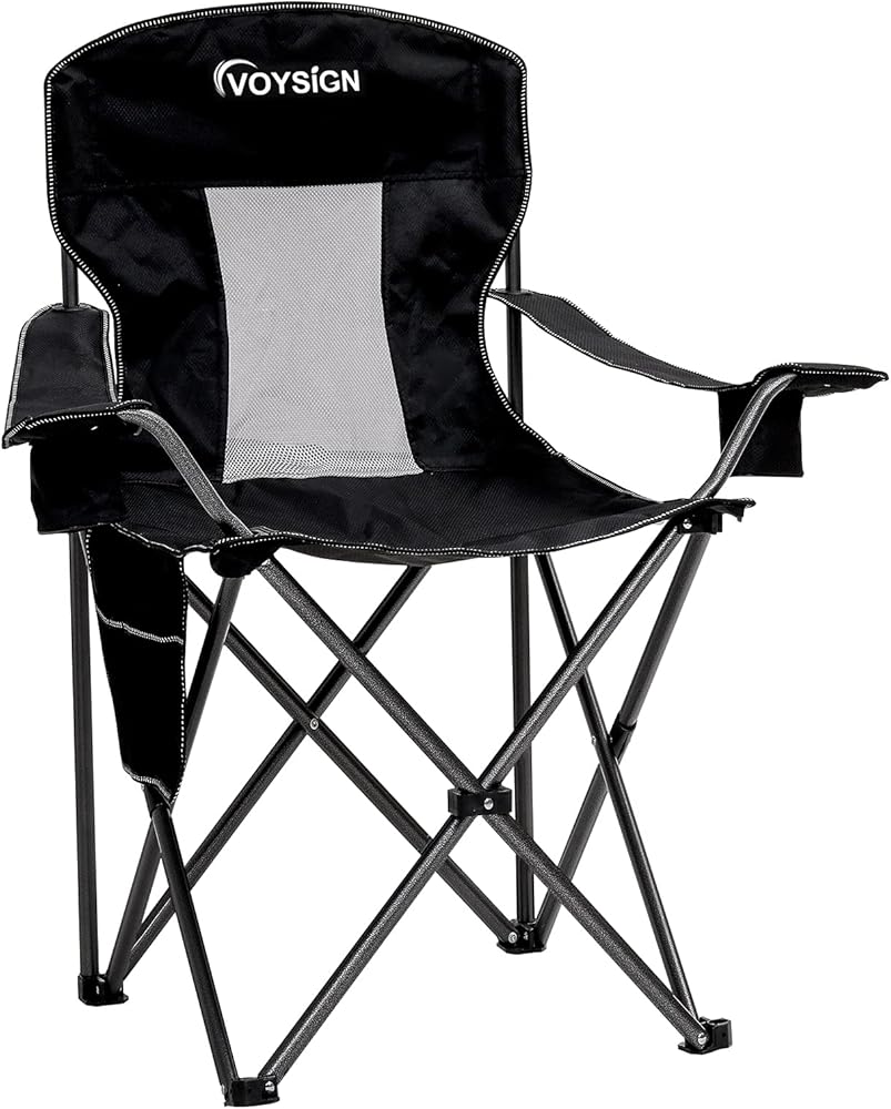 كراسي تخييم شبكية قابلة للطي للبالغين، كراسي خارجية محمولة كبيرة الحجم، سعة الوزن 325 رطلاً مع حامل أكواب، جيب تخزين، حقيبة حمل