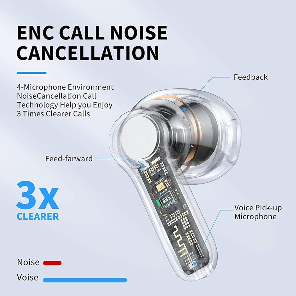 سماعات أذن لاسلكية، سماعات رأس بلوتوث، وسادات هوائية بخاصية إلغاء الضوضاء، وسادات أذن ثلاثية الأبعاد 4، وسائد أذن داخل الأذن مع سماعات أذن رياضية عميقة، وحقيبة شحن USB-C، لأجهزة Android/Samsung/Apple iPhone