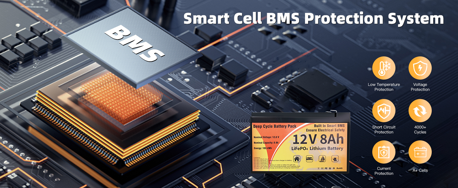 【BMS الذكية المدمجة】تحتوي بطاريات الليثيوم LiFePO4 على نظام BMS مدمج يحمي من الشحن الزائد، والإفراط في التفريغ، والتيار الزائد، ولها معدل تفريغ ذاتي ممتاز. يمنع قطع درجة الحرارة المرتفعة المدمج درجات حرارة الشحن من تجاوز 50 درجة مئوية. بالإضافة إلى ذلك، يمكن إعادة شحن البطارية بثلاث طرق، بما في ذلك شاحن بطارية ليثيوم فوسفات الحديد، ولوحة شمسية مع جهاز تحكم، ومولد كهربائي (مولد كهربائي).