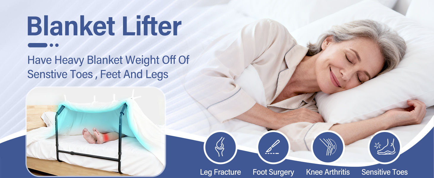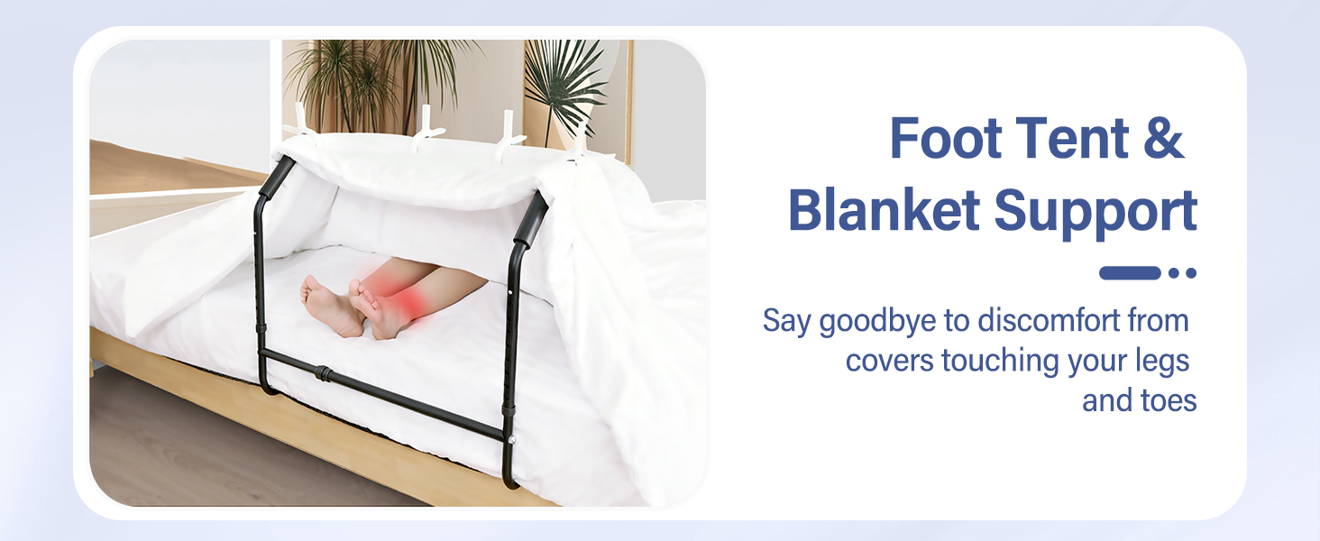 أغطية الرفع وتخفف الألم - تعمل رافعات البطانية JFNoraiva لقدم السرير على تقليل الانزعاج بشكل فعال عن طريق منع القدمين أو الساقين من الاتصال المباشر بالبطانيات والملاءات. لتخفيف الألم الناجم عن الاعتلال العصبي أو التعافي بعد الجراحة أو الحروق. يمكن أن يساعد شريط رفع البطانية هذا أيضًا أولئك الذين يعانون من تشنجات القدم وأصابع القدم، ومتلازمة تململ الساق، والتهاب المفاصل، والنقرس.