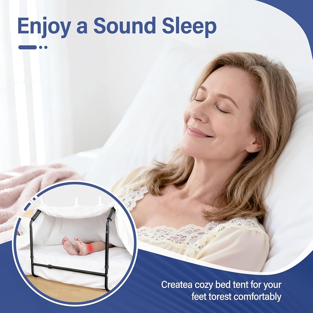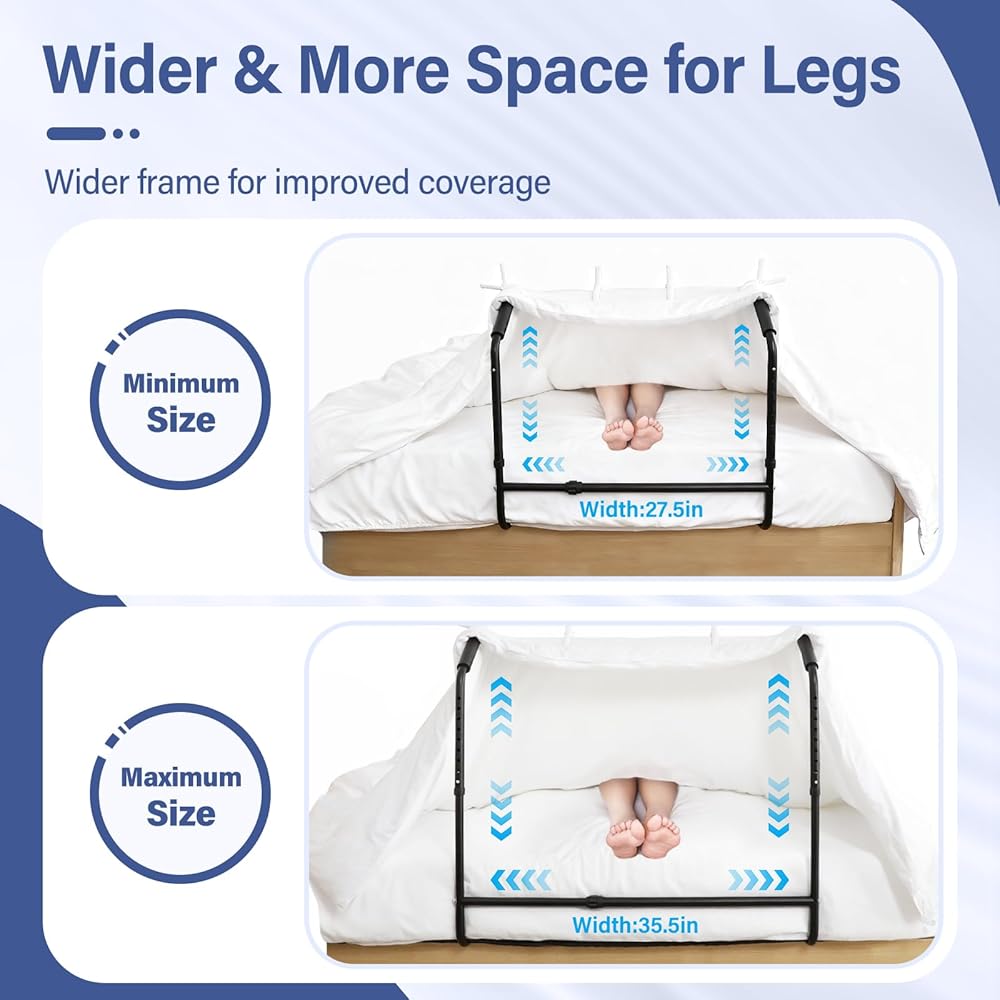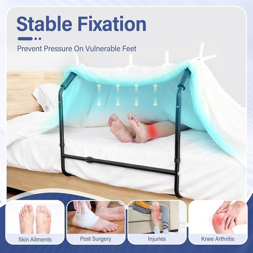 رافع البطانية للأقدام تحت المرتبة - دعم ملاءة سرير قابل للتعديل بعرض الارتفاع، خيمة قدم واسعة للغاية تحافظ على البطانيات بعيدًا عن القدمين للتعافي من التهاب المفاصل العصبي بعد الجراحة، تتضمن 4 مشابك