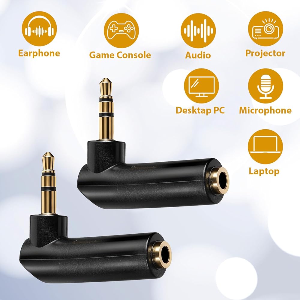 [Universal Compatibility] This 90 degree plug adapter is compatible with most devices using 3.5mm interfaces, including mobile phones, tablets, players, speakers, and headphones, offering wide applicability.