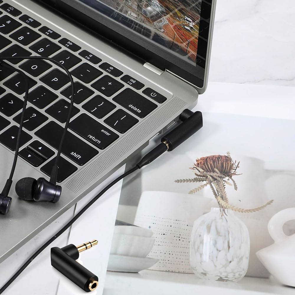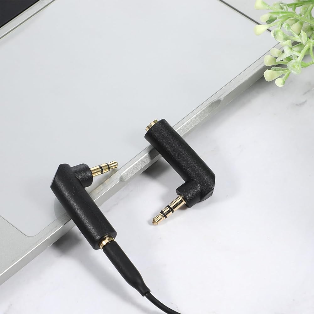 [Right-Angle Design] This 3.5mm 90 degree plug adapter features a right-angle design to prevent breakage, making it ideal for devices with limited space. It allows for use in confined spaces without obstructing adjacent ports.