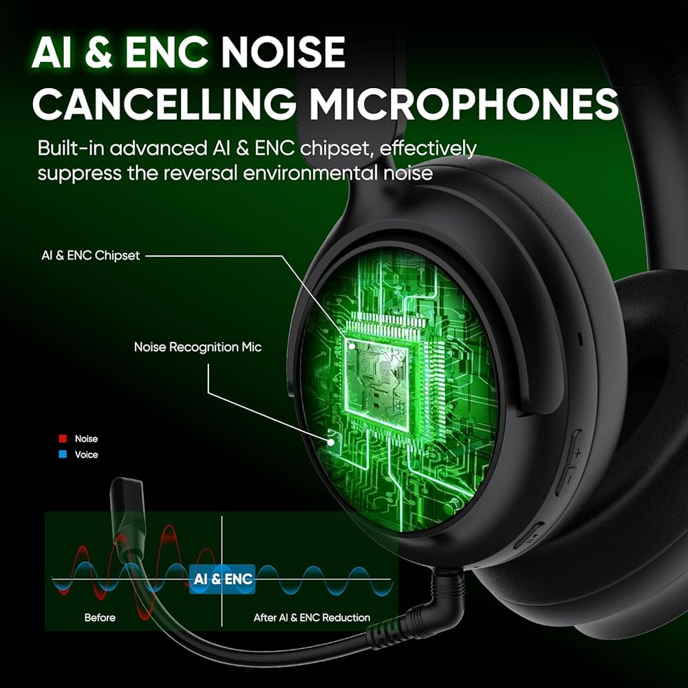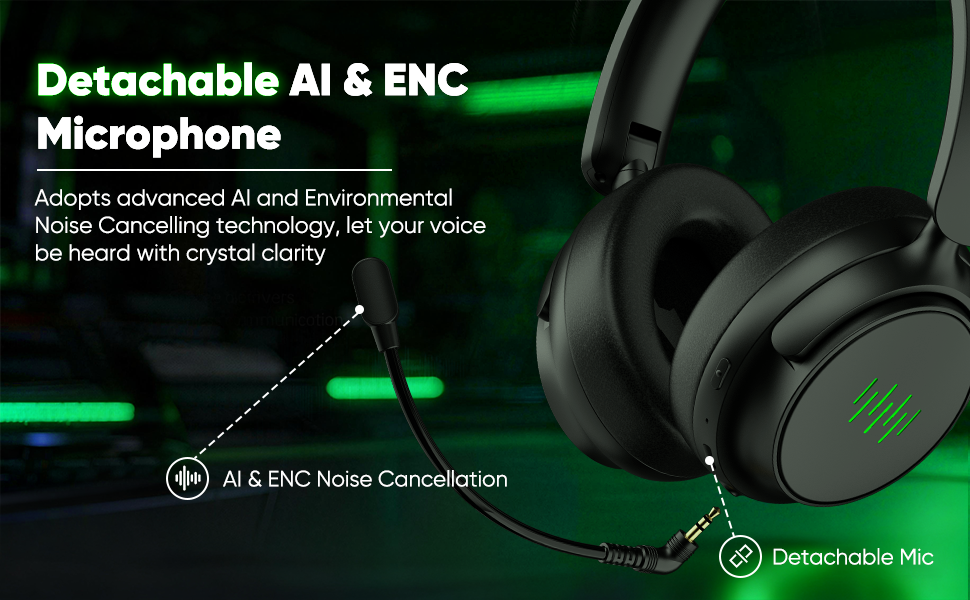 • تقنية إلغاء الضوضاء التعاونية AI & ENC المتقدمة: تستخدم شريحة سماعة الرأس اللاسلكية BETMI خوارزميات ذكية قوية مع تقنية إلغاء الضوضاء البيئية المتكيفة مع ENC، بحيث يمكن للميكروفون القابل للفصل والميكروفون المدمج المجهز بشكل منفصل التعرف على ضوضاء الخلفية والقضاء عليها بشكل فعال في البيئات الصاخبة، مما يسمح لك بإجراء محادثات صوتية أكثر وضوحًا مع زملائك في الفريق وتعزيز التعاون في الألعاب
