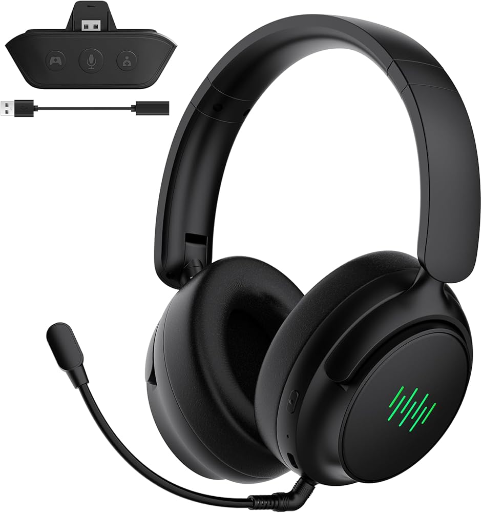 سماعة ألعاب لاسلكية BETMI لأجهزة Xbox/PS-5/PC/PS-4/Switch، صوت محيطي 7.1، 2.4 جيجا هرتز/بلوتوث 5.2 مع ميكروفون AI+ENC قابل للفصل لإلغاء الضوضاء، ضوء LED، برامج تشغيل 40 مم، زر كتم الصوت (أسود)