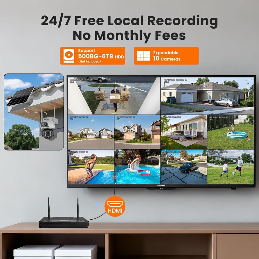 【𝟑 𝐒𝐭𝐨𝐫𝐚𝐠𝐞 𝐎𝐩𝐭𝐢𝐨𝐧𝐬 + 𝐍𝐨 𝐌𝐨𝐧𝐭𝐡𝐥𝐲 𝐅𝐞𝐞𝐬】احفظ اللقطات على بطاقات Micro SD (لكل كاميرا، حتى 256 جيجابايت)، أو NVR HDD (سعة تخزين محلية 500 جيجابايت - 6 تيرابايت)، أو تخزين سحابي اختياري (أرخص من القهوة الأسبوعية). كل الدعم للتشغيل والتنزيل في أي وقت.