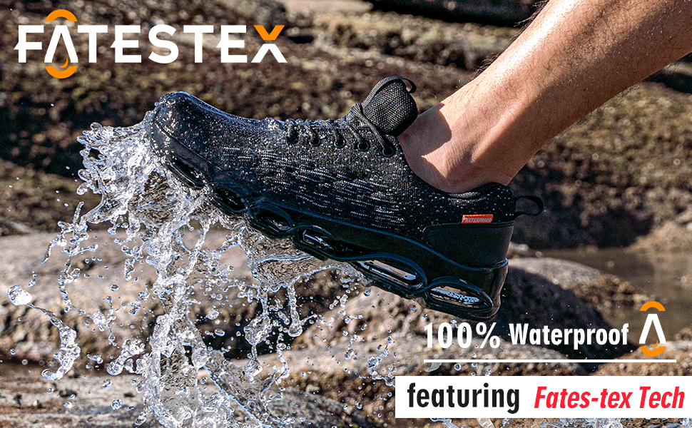 تقنية فيتس تيكس المقاومة للماء، ليست طلاء، مدمجة في الأجزاء العلوية المحبوكة هندسيًا، تغطي جميع المناطق (بما في ذلك اللسان). حافظ على قدميك وجواربك جافة تمامًا.