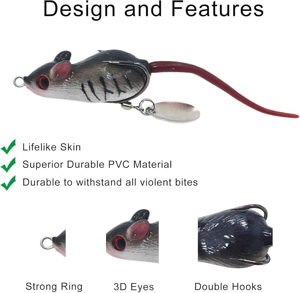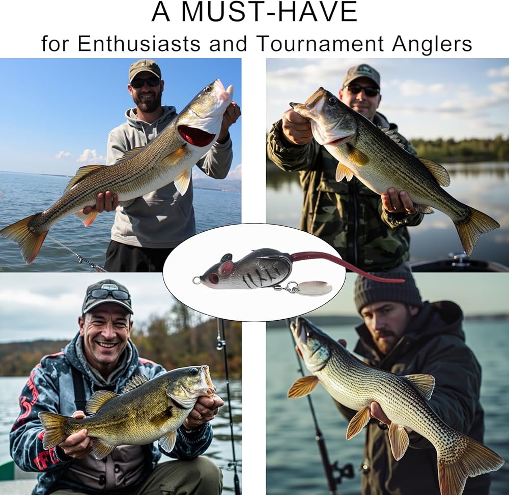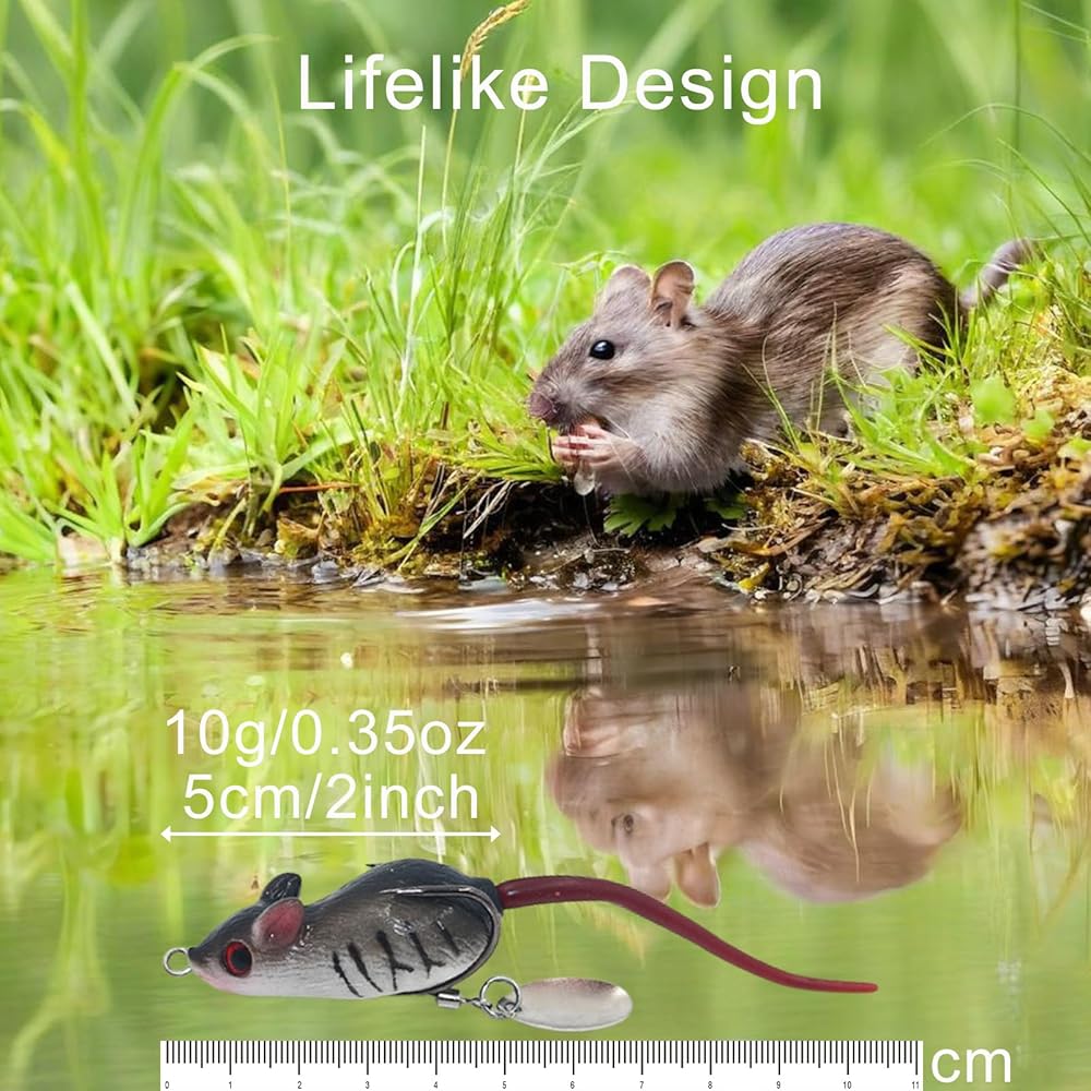 【Lifelike Rodent Design, Irresistible Action】This mouse fishing lure features 3D eyes and a realistic rat/mouse shape, perfectly mimicking a struggling rodent to trigger explosive strikes from Bass, Pike, and other predators.