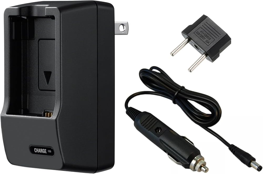 شاحن بطارية متوافق مع Leica D-LUX 5. الجهد الكهربائي العالمي (100-240 فولت)، تصميم مدمج محمول، قابس قابل للطي (يتضمن شاحن السيارة)