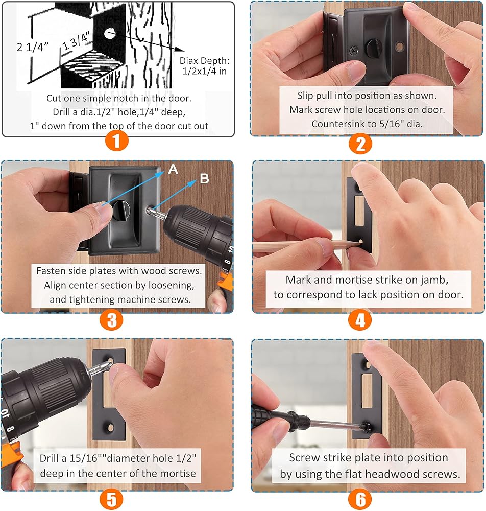 【استبدال قفل الباب】مصمم ليتم تركيبه على معظم أنواع الأبواب، قفل الخصوصية لباب الجيب هذا أنيق ويتناسب بشكل مثالي مع أي لون أو باب خشبي منزلق. عندما يكون قفل خصوصية باب الجيب الخاص بك مكسورًا أو قديمًا، فلن تحتاج إلى استبدال الباب بالكامل، فقط احصل على مجموعة القفل والسحب.