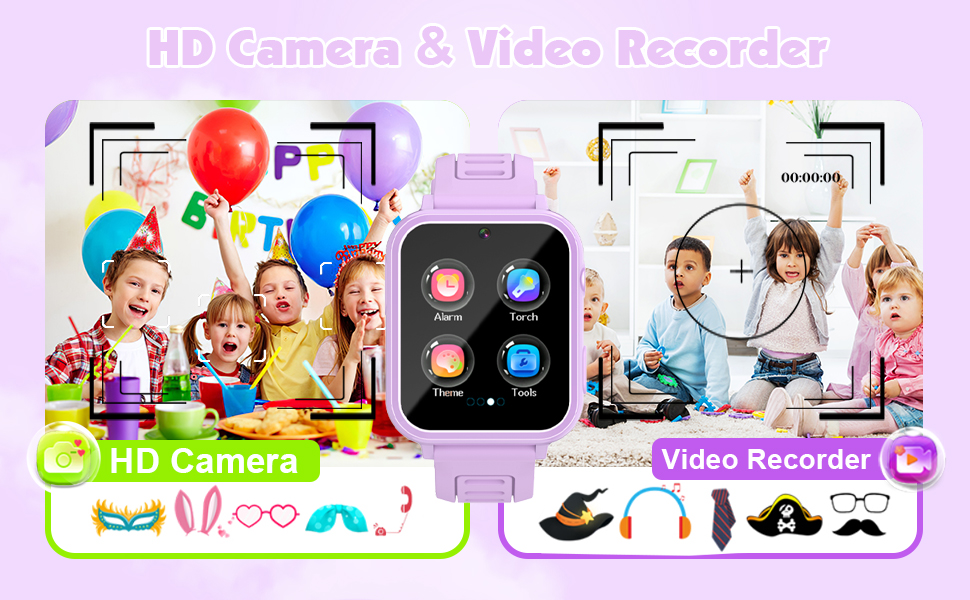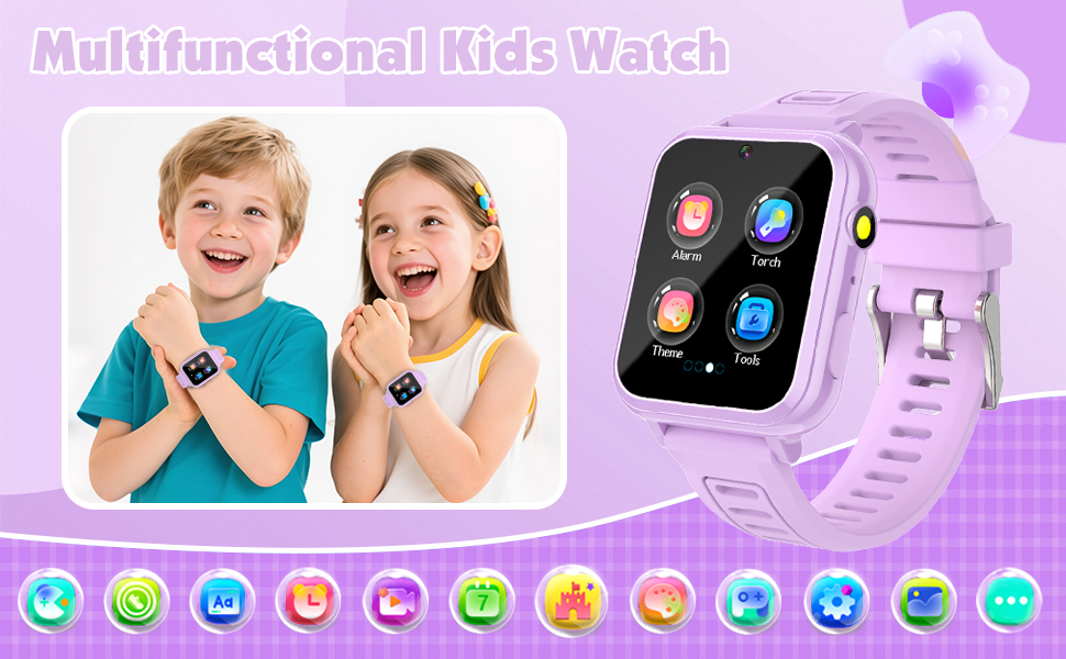 • 【ساعة ذكية متعددة الوظائف】ساعة ذكية للأطفال مع كاميرا سيلفي عالية الدقة، ومسجل صوت، و39 لعبة تعليمية، ومصباح يدوي، ووجه ساعة DIY، ومشغل موسيقى، ومسجل صوت، وعداد الخطوات، وساعة منبه، وساعة إيقاف، وآلة حاسبة، ومؤقت إضاءة خلفية، وكتاب صوتي، وبطاقات تعلم، ومتتبع العادات، إلخ.
