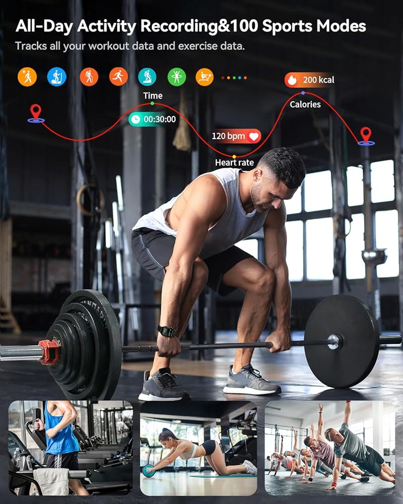 ساعة ذكية (الرد/إجراء مكالمة)، ساعة ذكية بشاشة AMOLED منحنية 2.1 بوصة للرجال والنساء، أكثر من 100 وضع رياضي لتتبع اللياقة البدنية، مراقب معدل ضربات القلب أثناء النوم، SpO2، متتبع نشاط IP68، متوافق مع Android وiOS