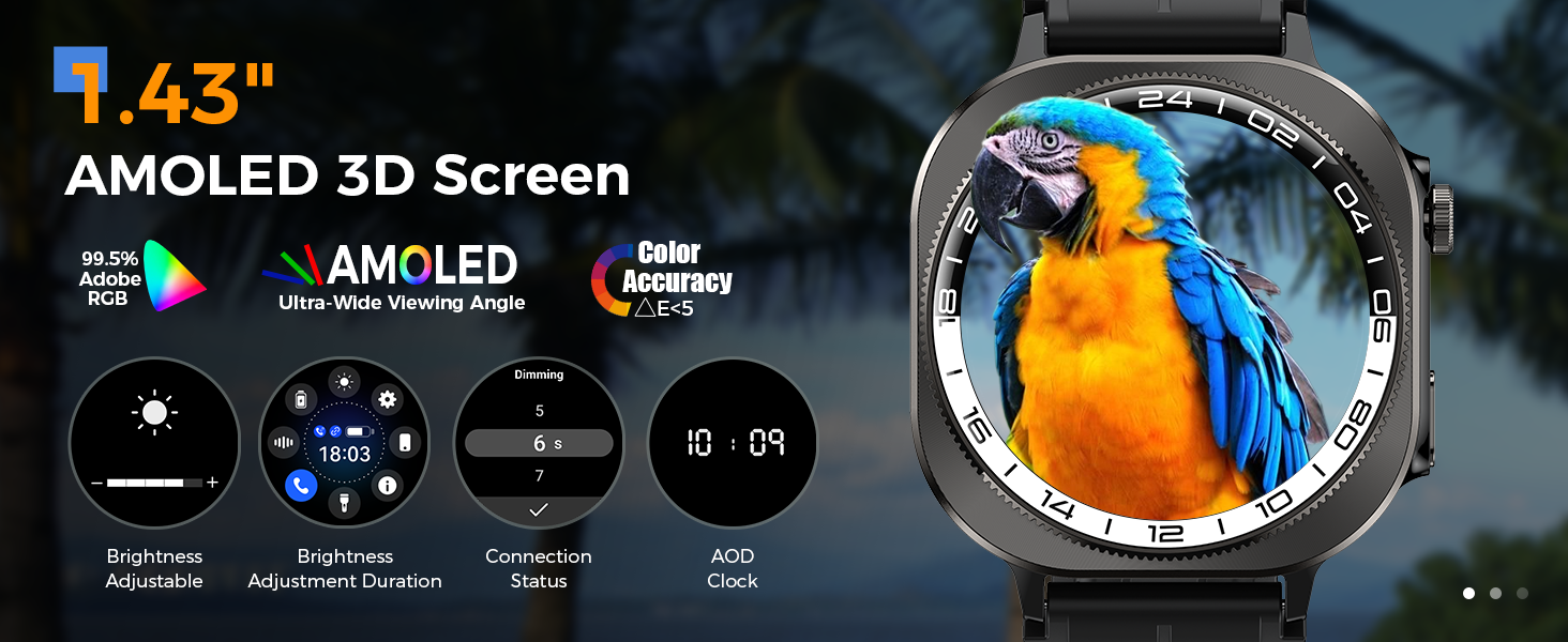 【شاشة AMOLED ثلاثية الأبعاد مقاس 1.43 بوصة، قرص مخصص 250+】تتميز الساعة الذكية Soudorv Y10 بشاشة AMOLED ملونة مقاس 1.43 بوصة وزجاج مقسى منحني ثلاثي الأبعاد. يبلغ سمك الجسم 13 ملم وخفيف الوزن يصل إلى 50 جرامًا، مما يوفر تجربة رقيقة وحساسة. اضبط السطوع يدويًا حتى تتمكن من عرض الوقت المعروض وبيانات التمرين بوضوح حتى في ضوء الشمس المباشر. يمكنك أيضًا الاختيار من بين أكثر من 250 وجهًا للساعة عبر الإنترنت في تطبيق "FitCloudPro" أو تحميل الصور كخلفيات للساعة الذكية.