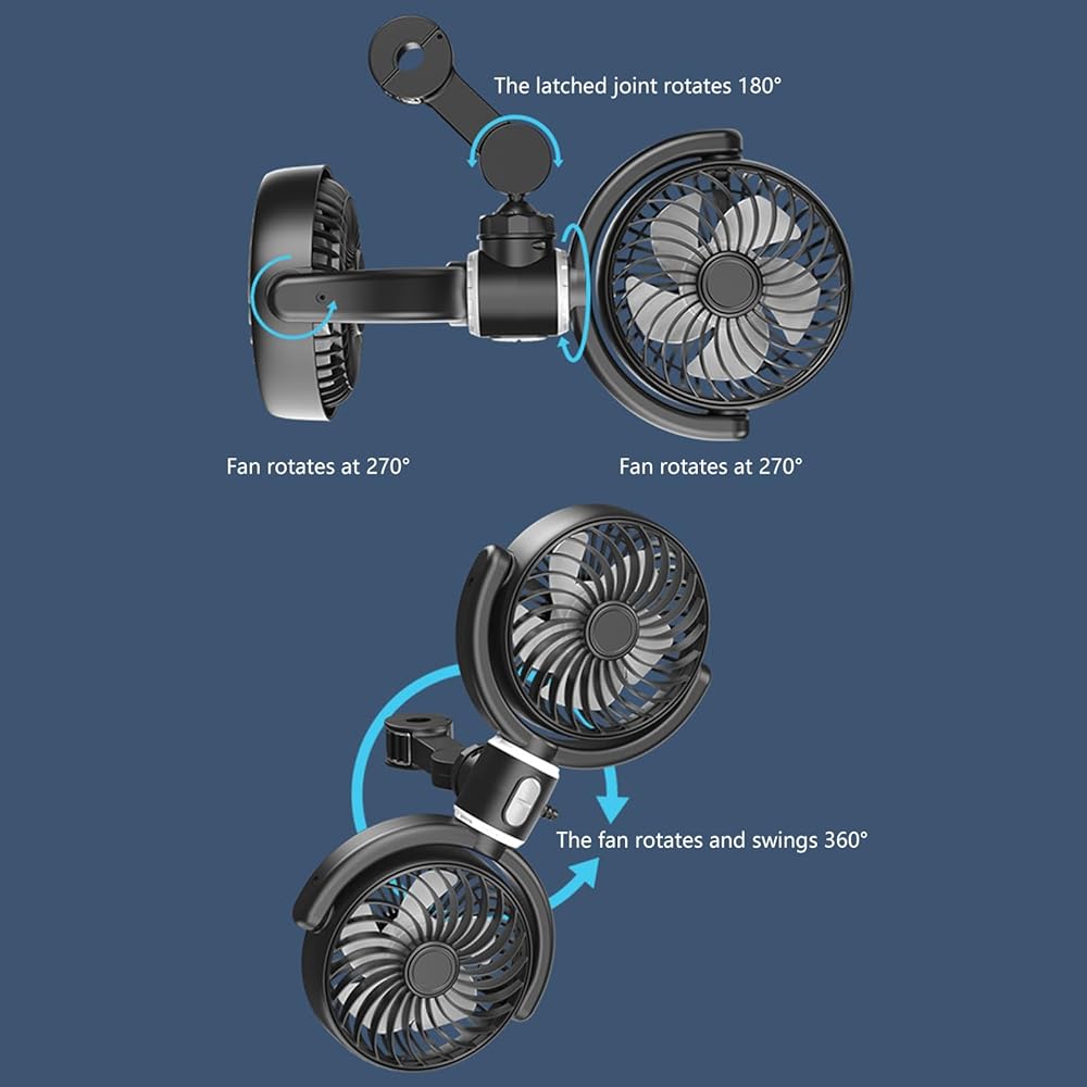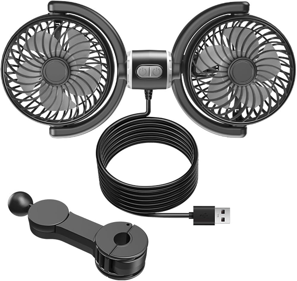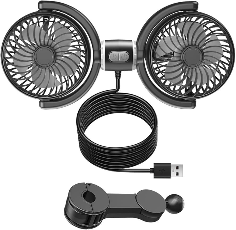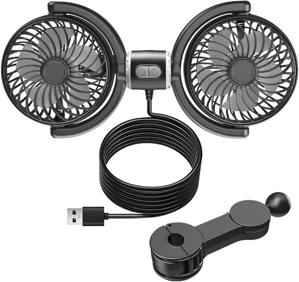 Lightweight Double Head Car Fan 3 Speed USB Powered Rotatable Cooling Device for Enhanced Comfort & Air Circulation