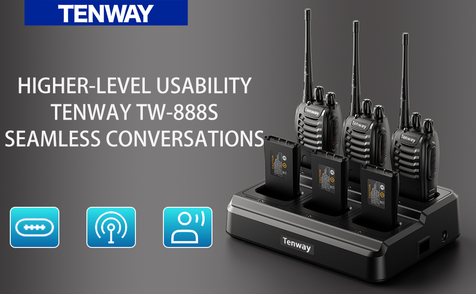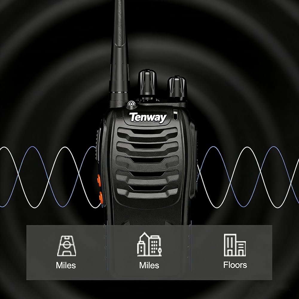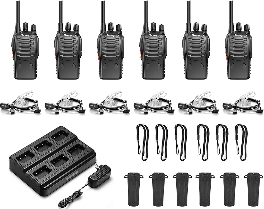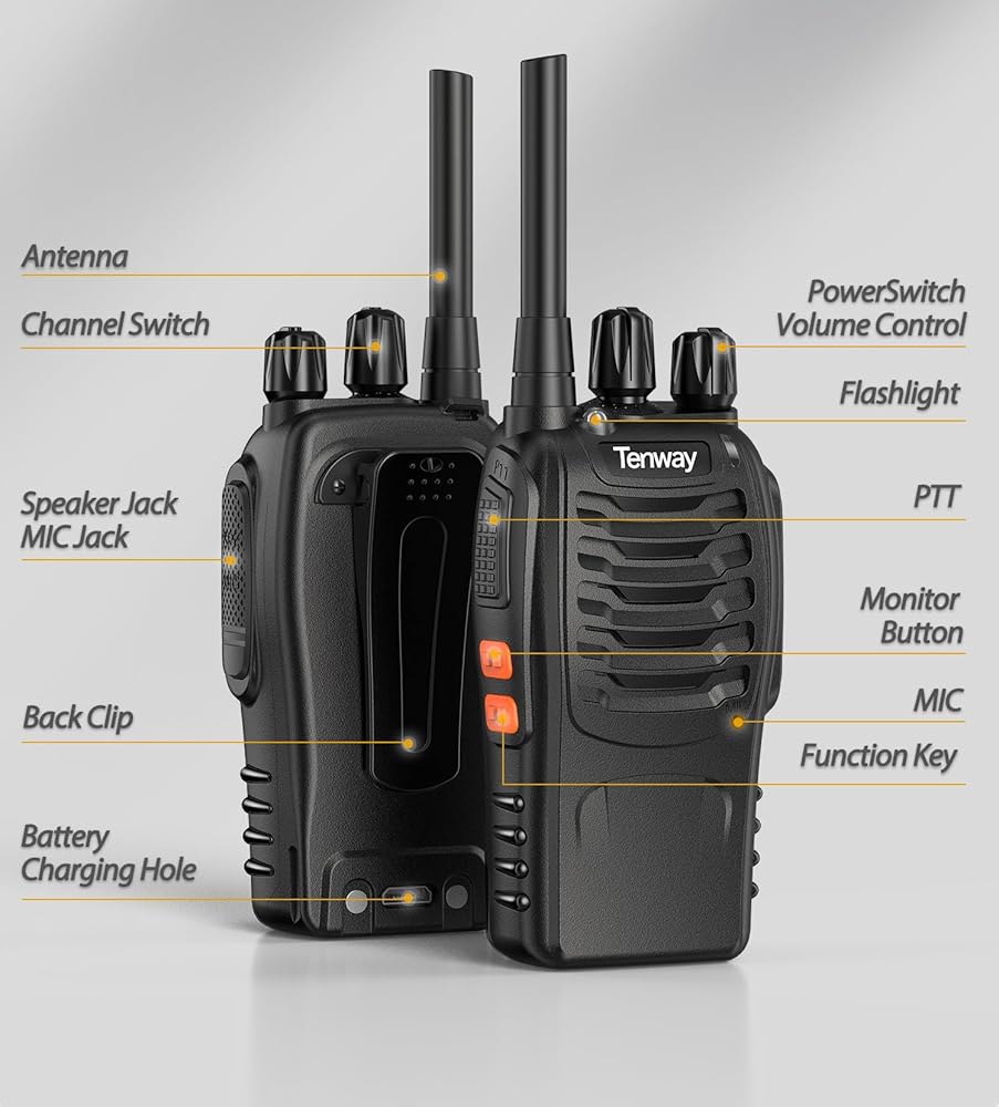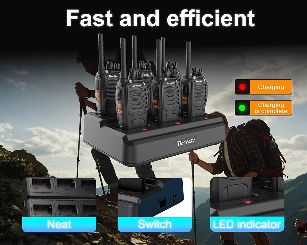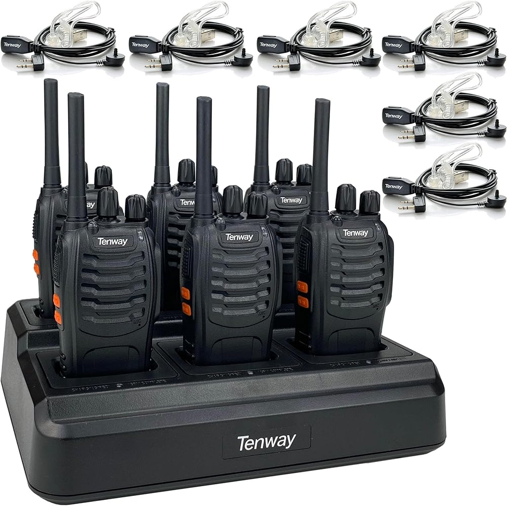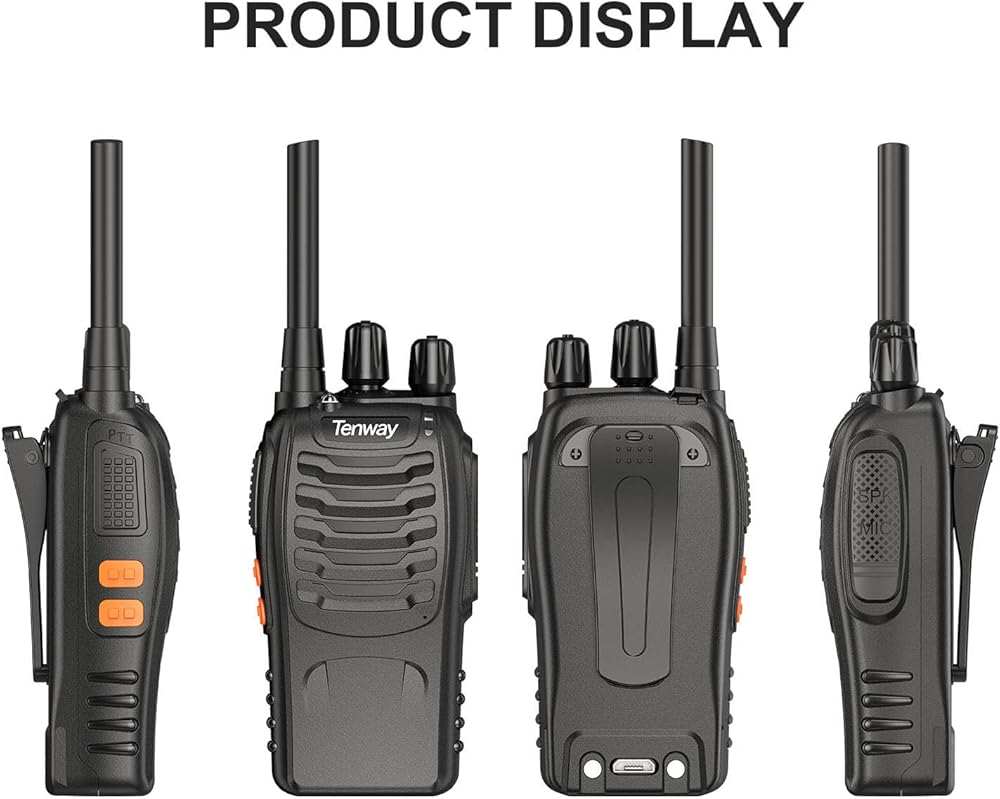 Tenway TW-888S أجهزة اتصال لاسلكية للبالغين طويلة المدى، أجهزة راديو ثنائية الاتجاه قابلة لإعادة الشحن، مع شاحن وحدة متعدد 6 اتجاهات، أجهزة راديو محمولة باليد للأعمال في اتجاهين