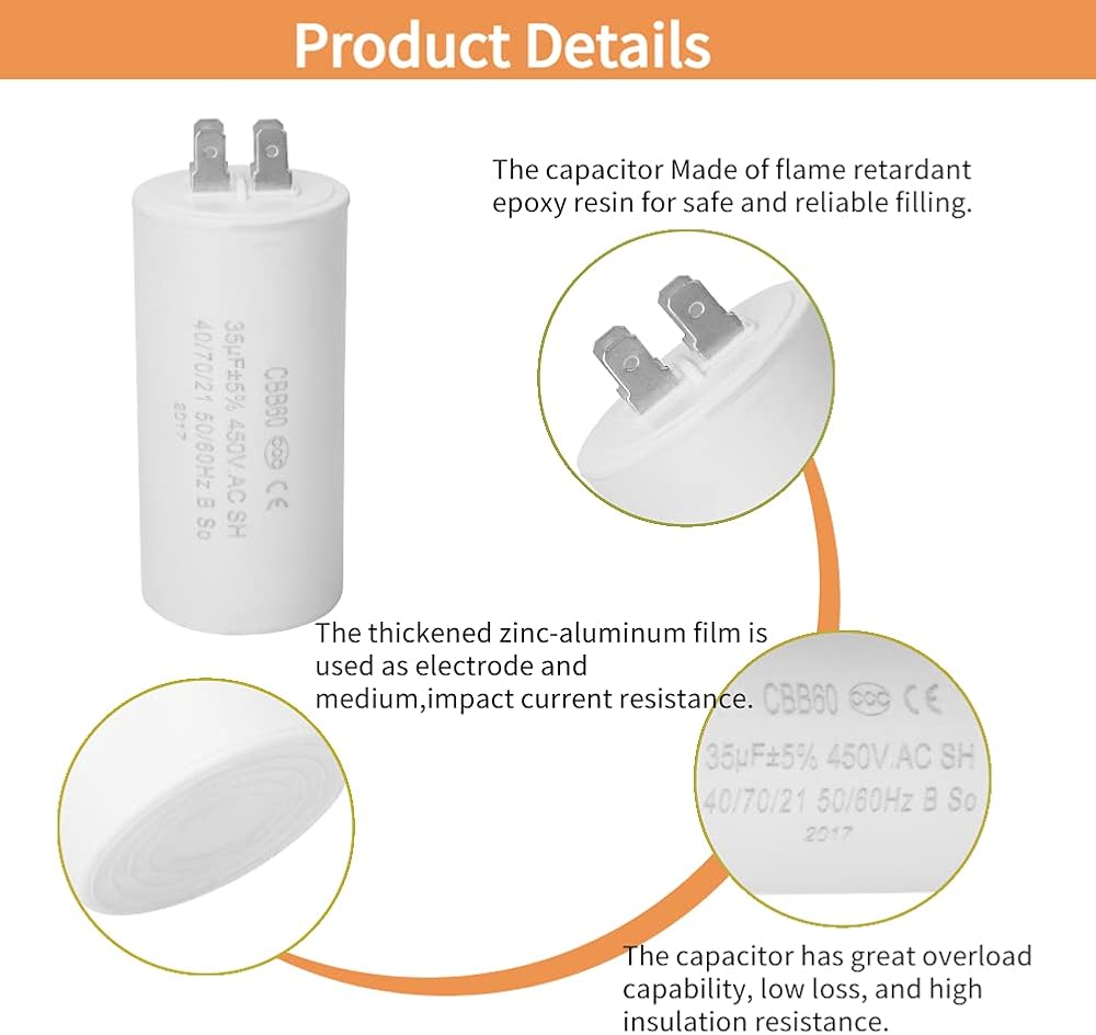 CBB60 مكثف البدء، 35 فائق التوهج 450 فولت محرك تشغيل مولد مكثف مضخة مكثف 4 دبوس لمحركات التيار المتردد، مضخات المياه، الغسالات