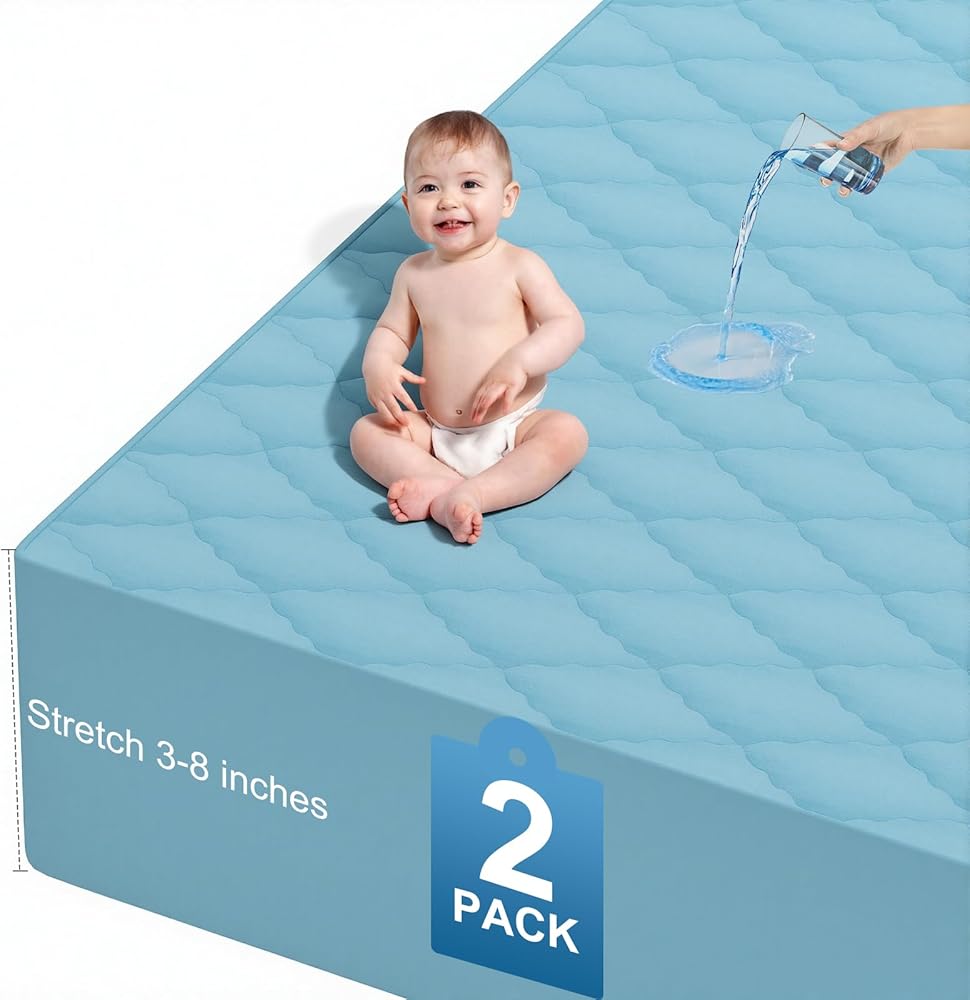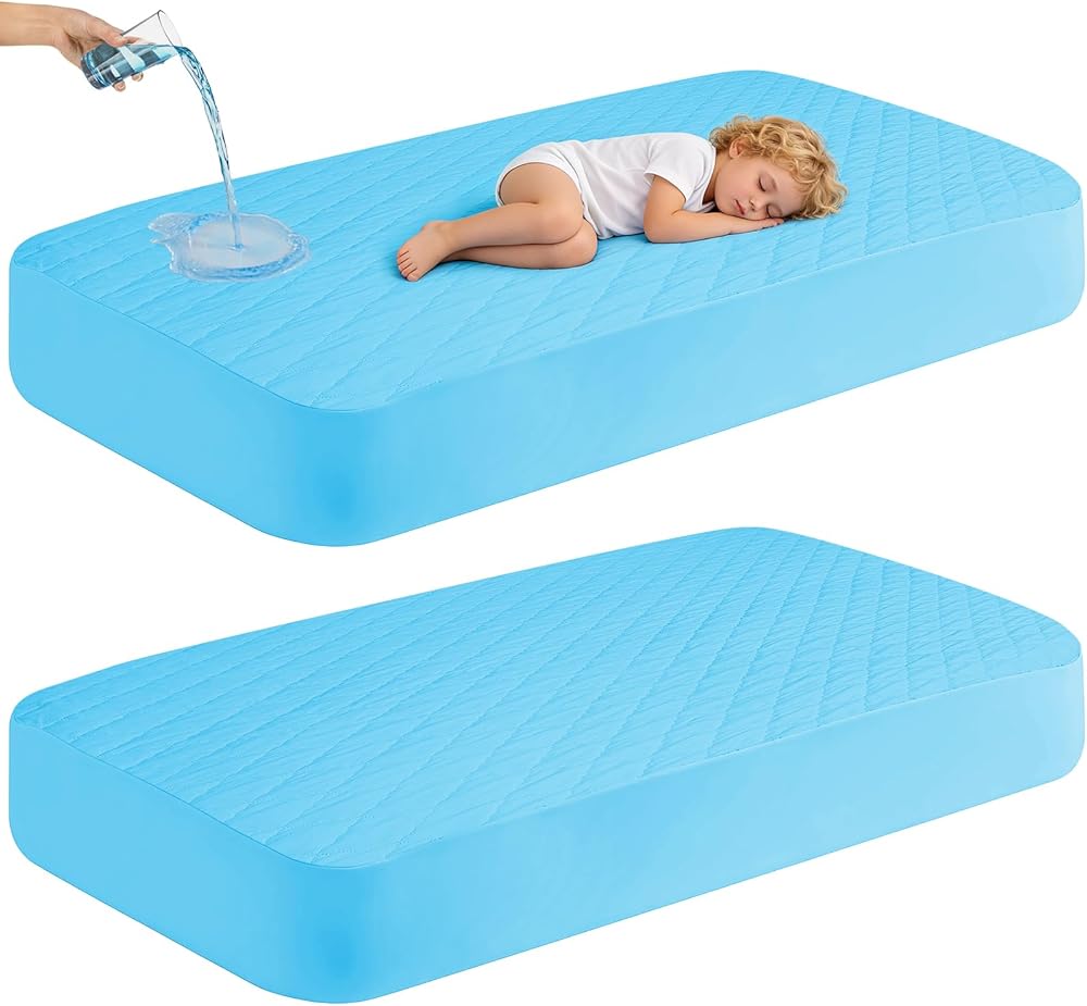مجموعة ملاءات سرير الأطفال المكونة من قطعتين تأتي مع مرتبتين مقاومتين للماء لكل من الصبي والفتاة والتي يمكن أن تناسب تمامًا مرتبة سرير الأطفال القياسية بحجم 91.48 سم × 60.96 سم حتى 20.32 سم.