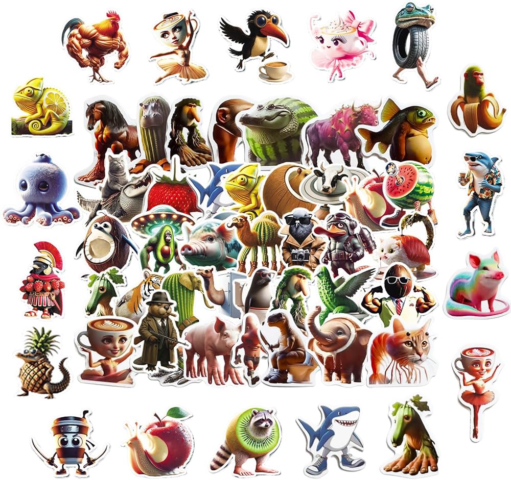 This Brainrot sticker pack includes 100 completely different designs, combining quirky animals, surreal memes, and colorful art that bring humor and creativity to your daily life.