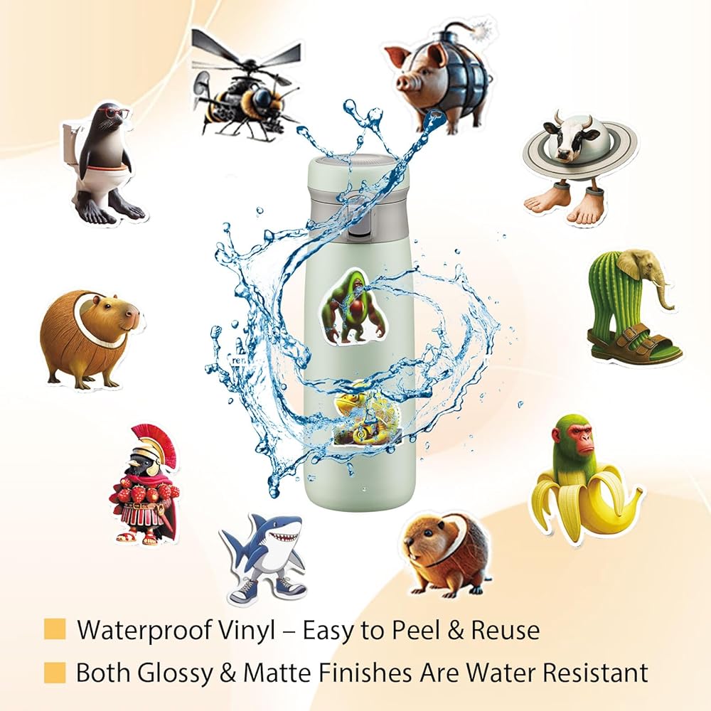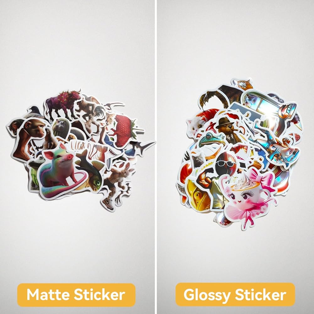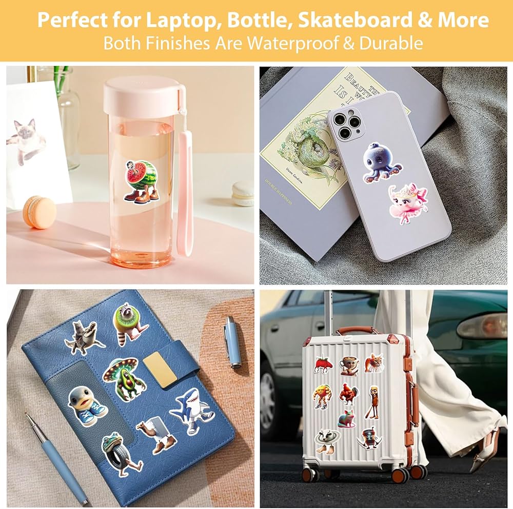 Each sticker is made of durable waterproof vinyl with both matte and glossy finishes. They're waterproof, sunproof, and easy to peel without leaving sticky residue — perfect for decorating laptops, bottles, journals, or skateboards.