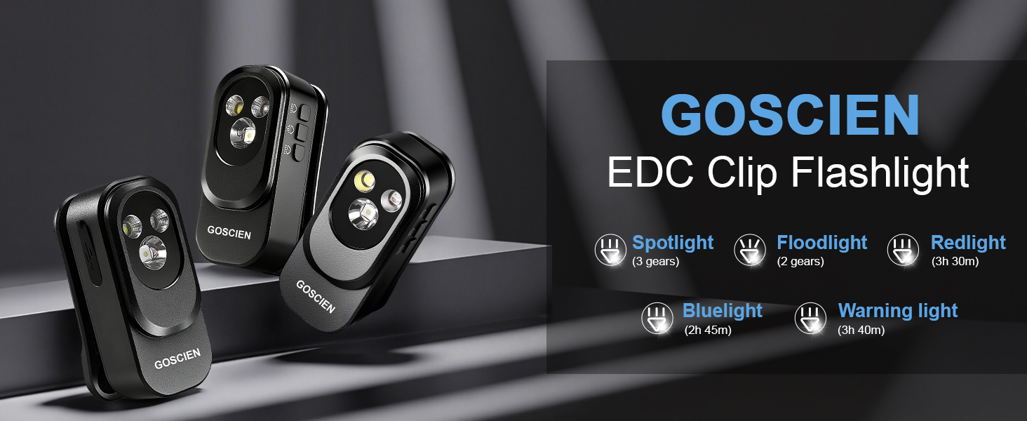 مصباح يدوي GOSCIEN Pro قابل لإعادة الشحن EDC بمشبك 500 لومن مع ثلاثة حلول إضاءة USB C شحن مغناطيسي IPX6 مصباح يدوي مقاوم للماء لركوب الدراجات، في الهواء الطلق وغيرها (أسود)