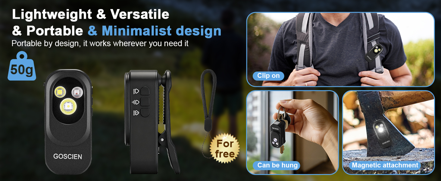 خفيف الوزن وصغير الحجم: يزن هذا المصباح المشبك 2.68 أونصة (50 جم) فقط ويبلغ طوله الإجمالي 2.24 بوصة (57 مم)، ومع ذلك فإنه لا يزال يوفر 500 لومن كحد أقصى. حجمه الصغير ووزنه الخفيف لا يؤثر على السطوع