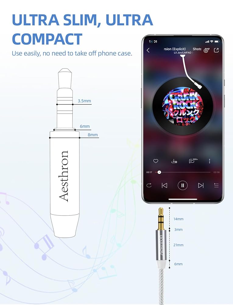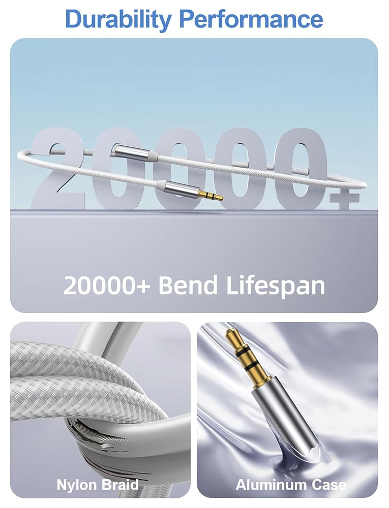 • المتانة والمرونة: اجتاز سلك سماعة الرأس المضفر المصنوع من النايلون أكثر من 15000 اختبار مدى الحياة، وهو متين بما يكفي لتحمل أي تطور أو شد أو تشابك، مما أدى إلى تحسين عمر تمديد كابل الصوت 3.5 مم بشكل كبير. وفي الوقت نفسه، من السهل أيضًا التوصيل والفصل دون إزالة حافظة هاتفك أو جهازك اللوحي