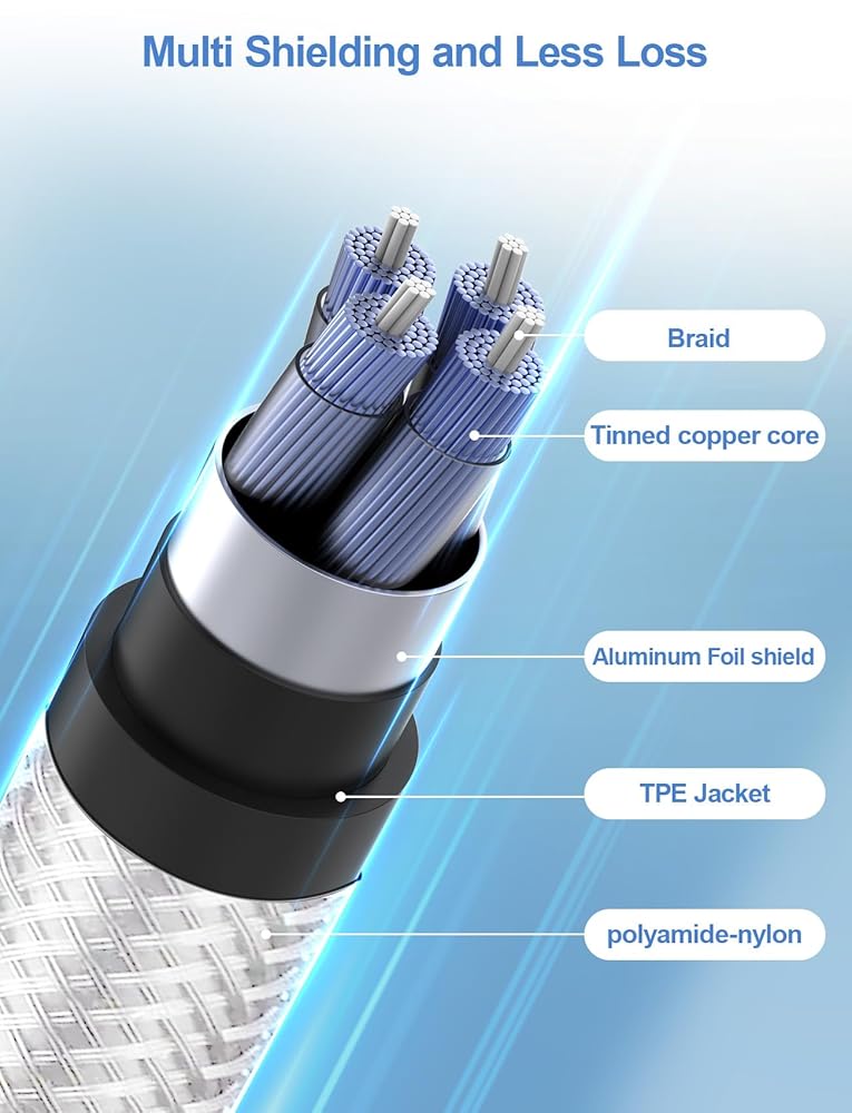 • جودة صوت مذهلة: مع قلب نحاسي عالي النقاء ودرع مزدوج، يمكن لكابل تمديد aux مقاس 3.5 مم نقل صوت مشغل الموسيقى إلى سماعات الرأس أو مكبرات الصوت دون كهرباء ساكنة وتداخل، مما يضمن المتانة بشكل مثالي والحد الأدنى من فقدان الإشارة