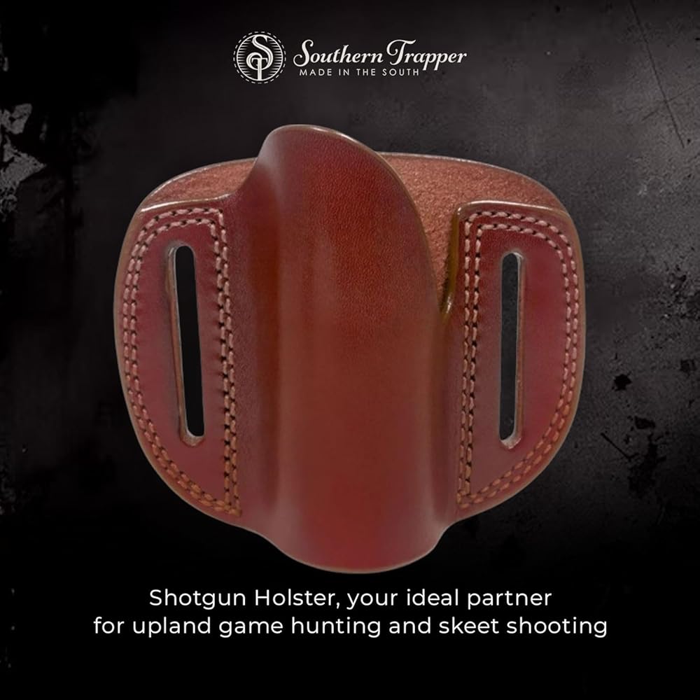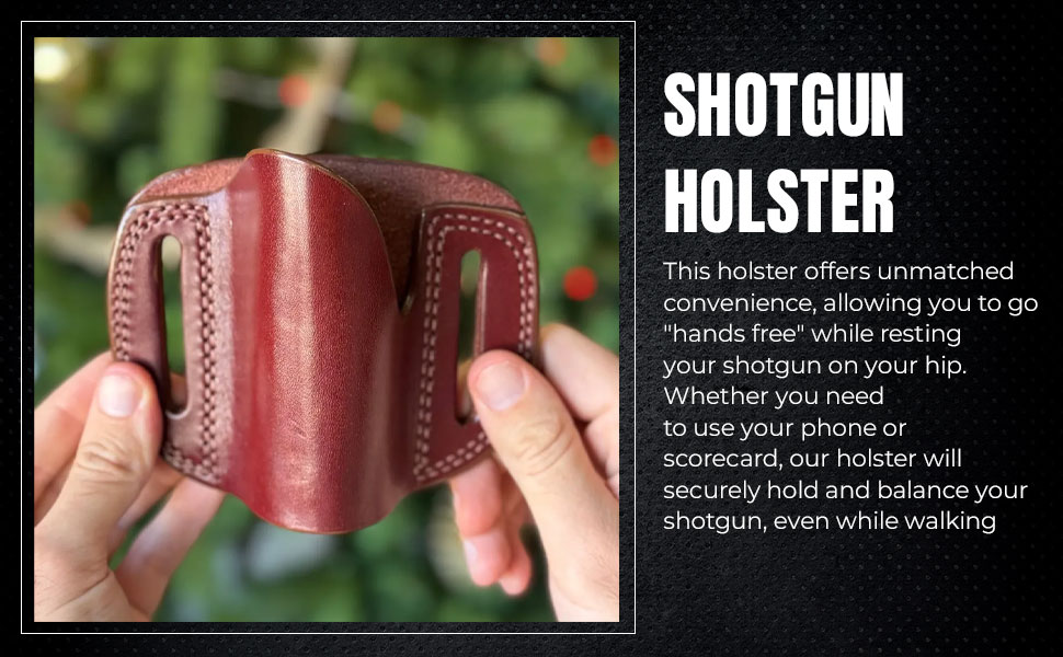Say goodbye to the hassle of propping your shotgun against stands and embrace the hands-free convenience that this holster provides. Crafted from premium cowhide, it's not just a practical accessory; it's a statement piece that complements your outdoor lifestyle. Invest in the Shotgun Holster and redefine the way you approach upland game hunting and skeet shooting. Whether you're navigating challenging terrains during upland game hunting or enjoying a day at the skeet shooting range, this holster provides unparalleled convenience, ensuring your shotgun is always within easy reach.