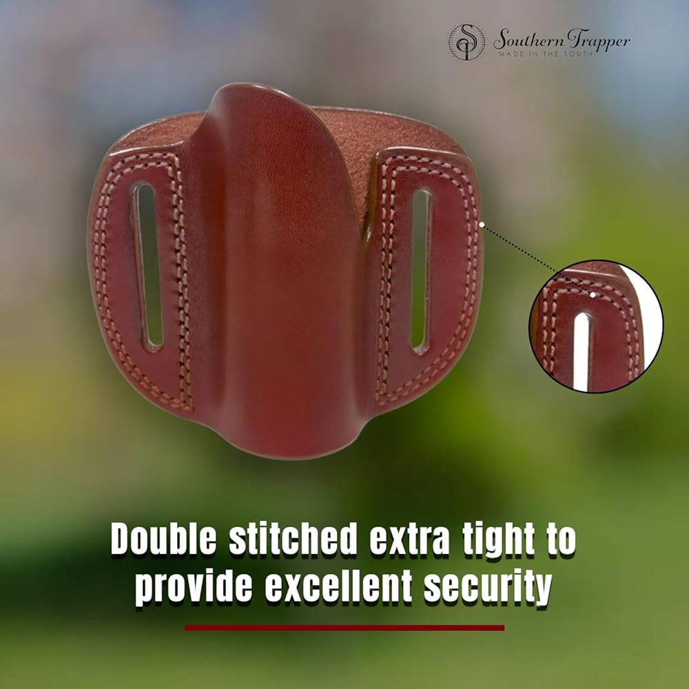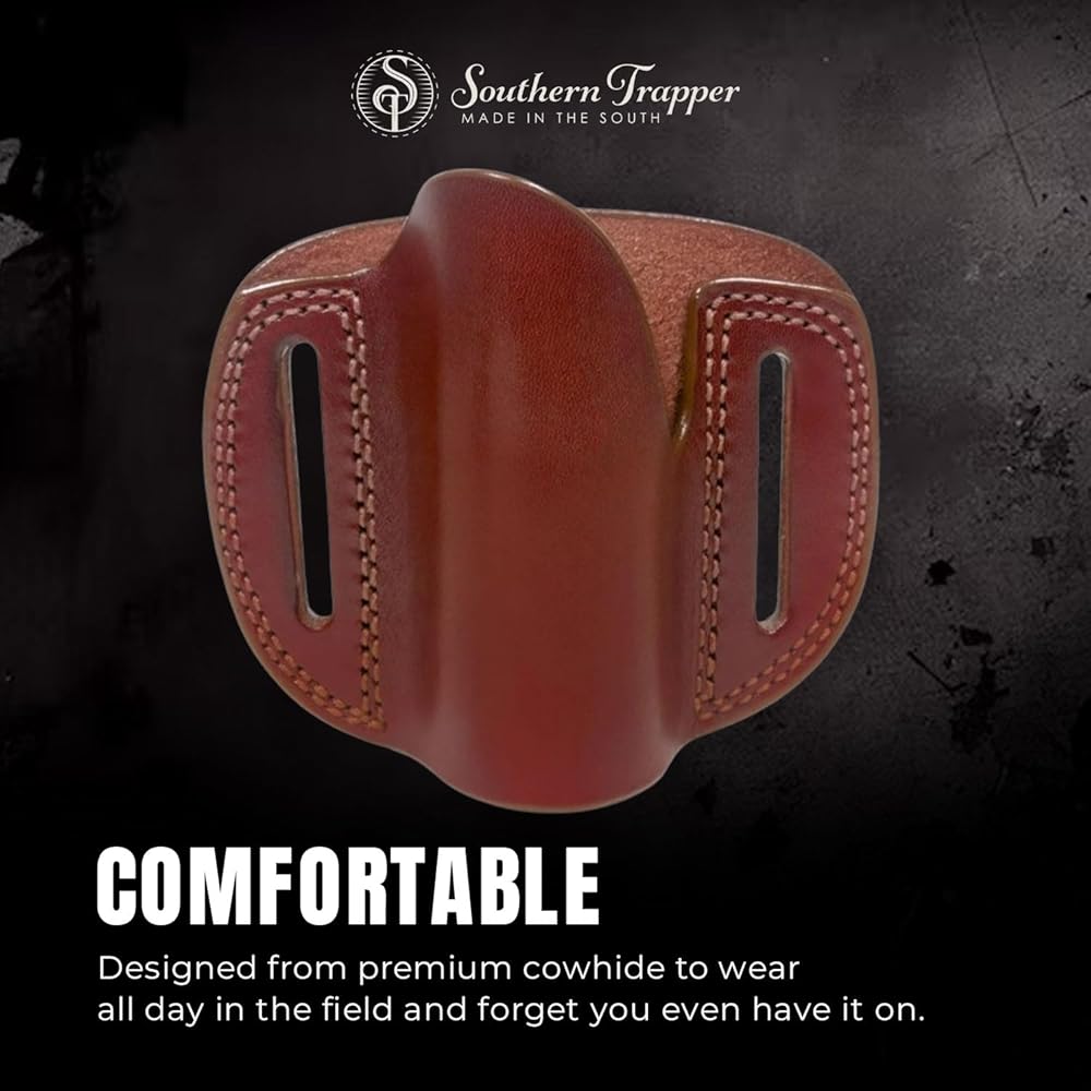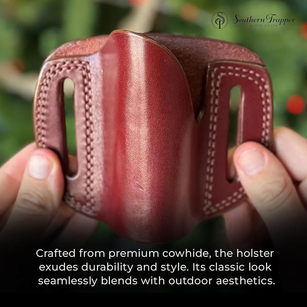 ✔️ Cowhide Craftsmanship: Crafted from premium cowhide, our holster blends durability with classic style. The timeless aesthetic seamlessly integrates with outdoor settings, making it an accessory that not only performs but also complements your overall look.