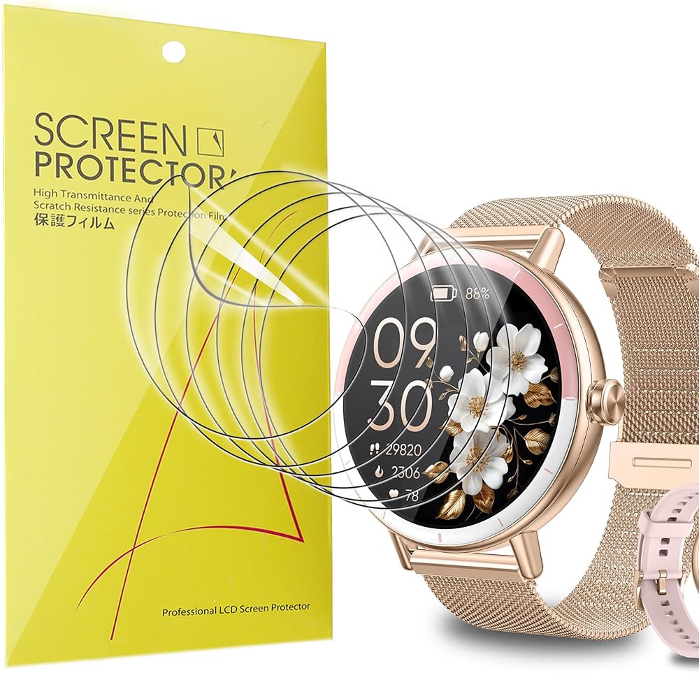Lamshaw متوافق مع واقي شاشة الساعات الذكية Yoever DR05، [6 عبوات] طبقة شفافة من مادة TPU بتغطية كاملة متوافقة مع الساعات الذكية KEEPONFIT DR05 مقاس 1.27 بوصة (6 عبوات)