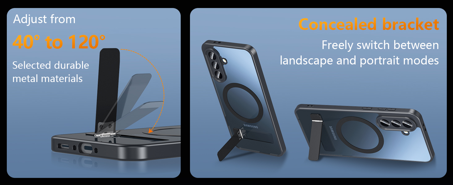 【وظائف مغناطيسية وحاملة مدمجة】يمكن توصيل الوحدة المغناطيسية المدمجة بسهولة بالشاحن المغناطيسي للشحن الفعال؛ وهي مجهزة بحامل مخفي يدعم زوايا متعددة لمشاهدة الفيديو وإجراء مكالمات الفيديو بشكل مريح.